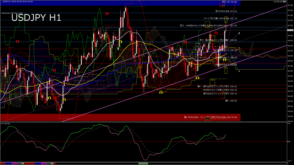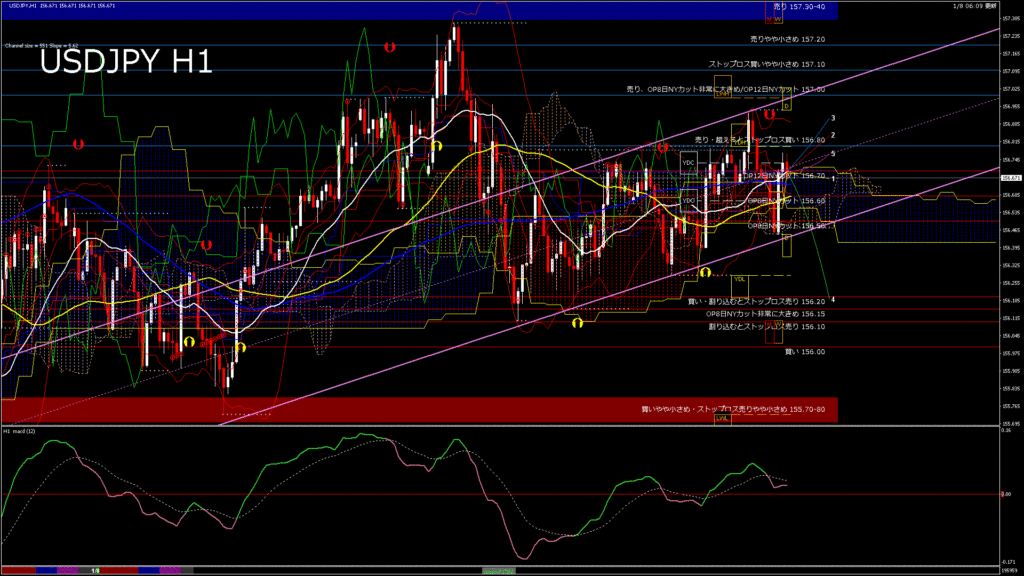 情報 USDJPY-H1移動平均線と現在値(RSI)-2026.1.9 5:00:00