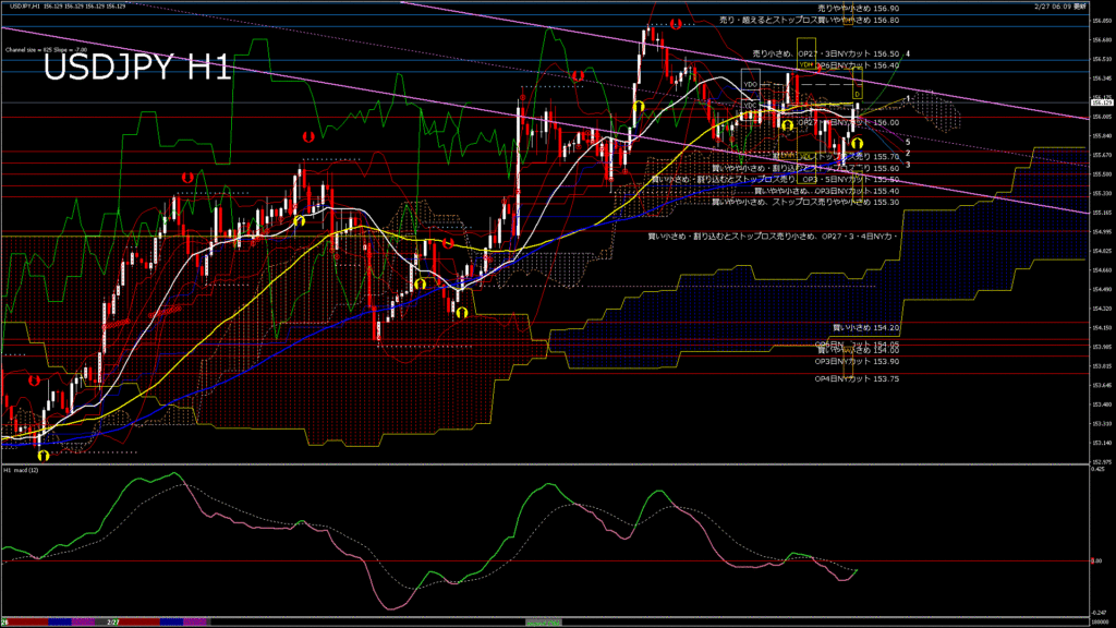 情報 USDJPY-H1移動平均線と現在値(RSI)-2026.2.28 3:00:00