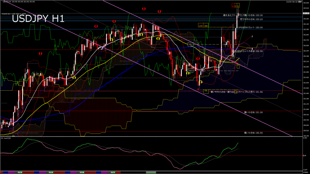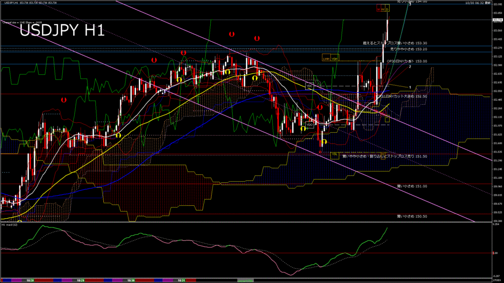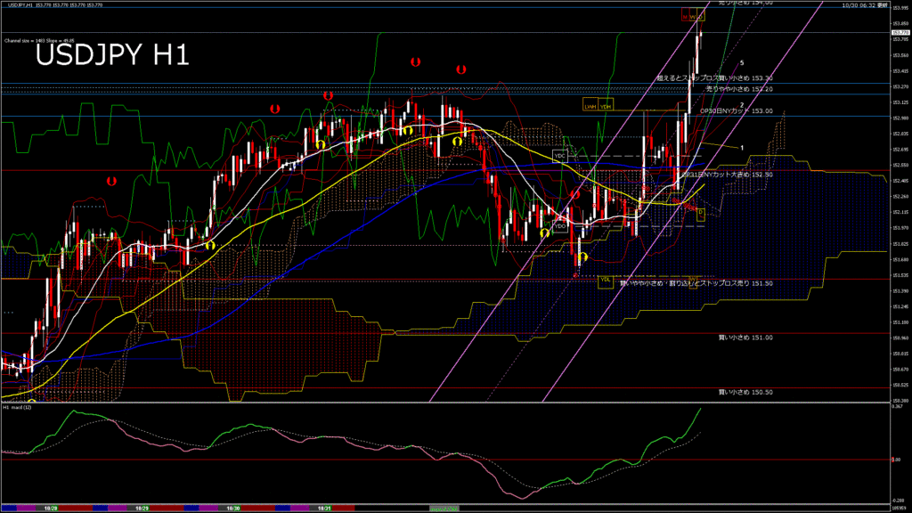 情報 USDJPY-H1移動平均線と現在値(RSI)-2025.10.30 22:00:00