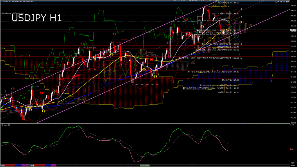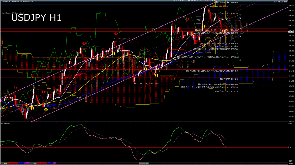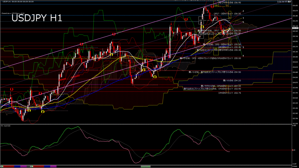 情報 USDJPY-H1移動平均線と現在値(RSI)-2026.2.26 18:00:00