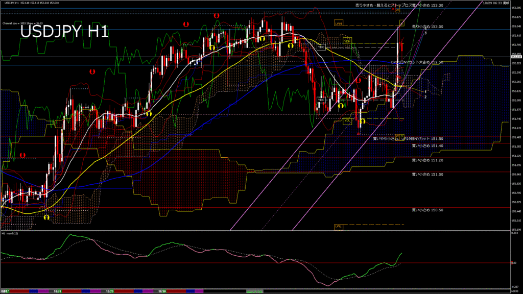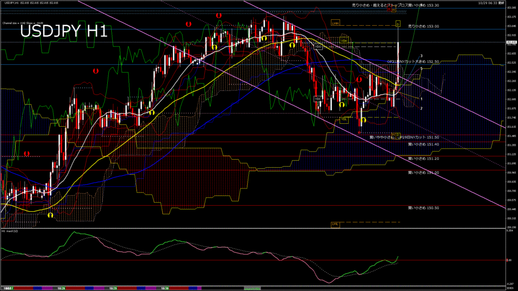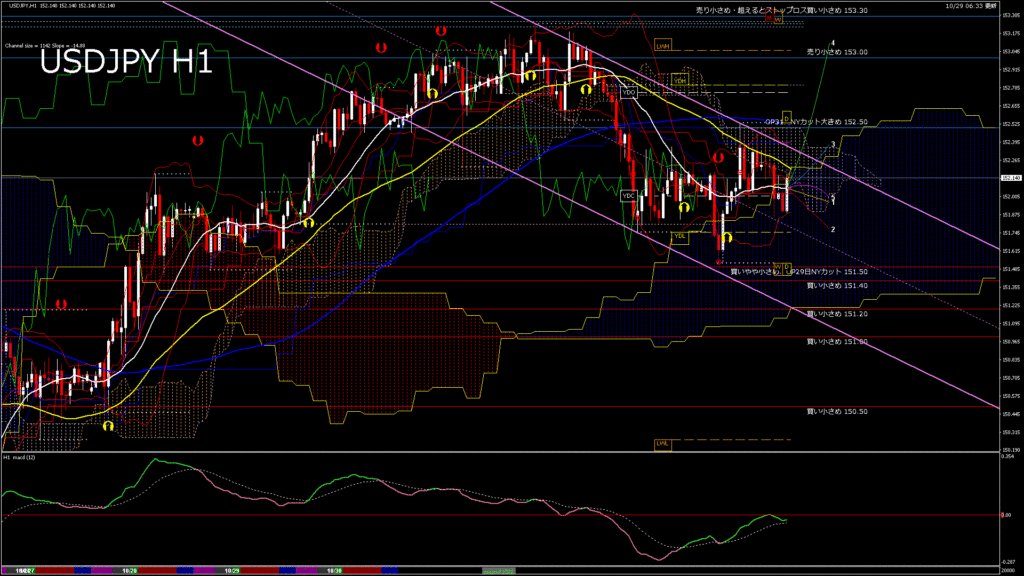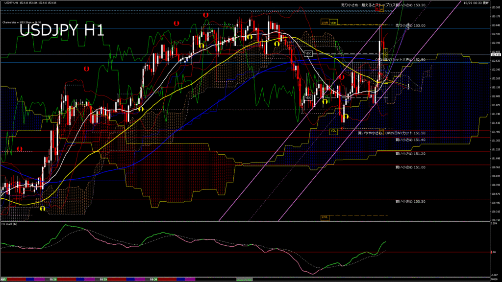 情報 USDJPY-H1移動平均線と現在値(RSI)-2025.10.30 8:00:00