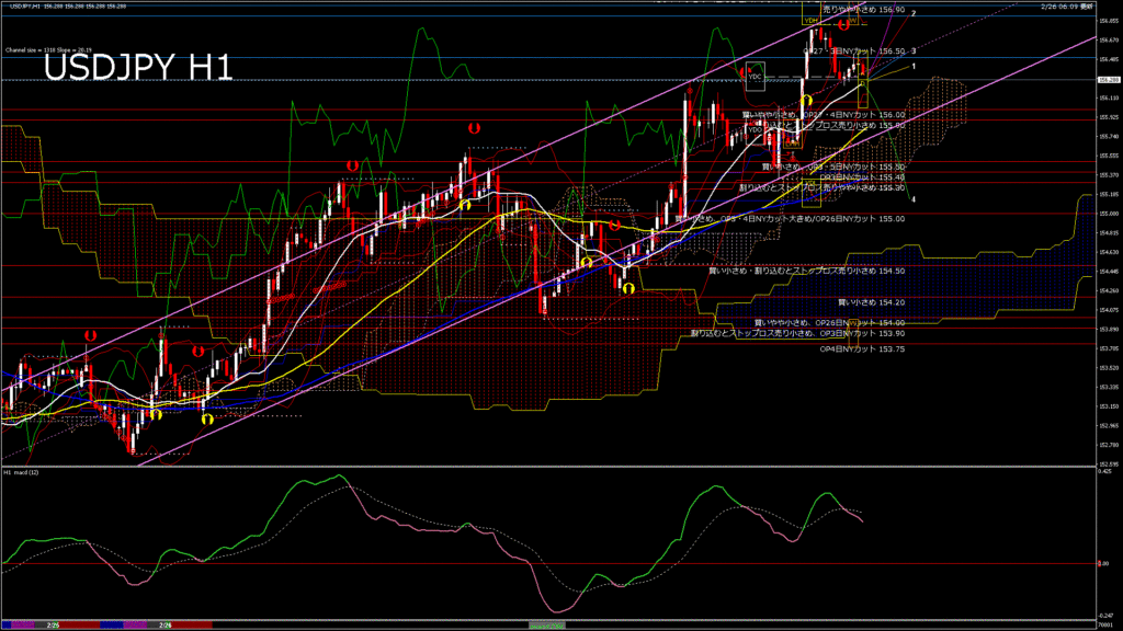 情報 USDJPY-H4移動平均線と現在値(RSI)-2026.2.26 11:00:06