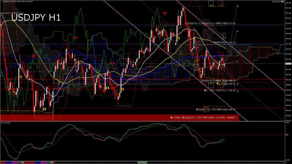情報 USDJPY-H1移動平均線と現在値(RSI)-2026.1.7 2:00:00