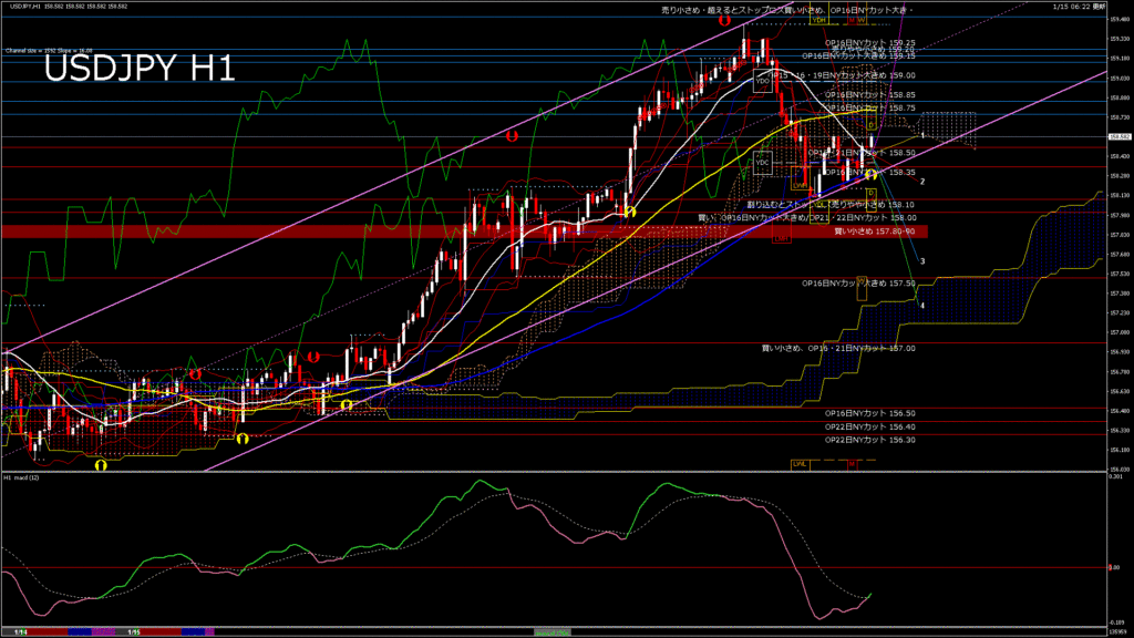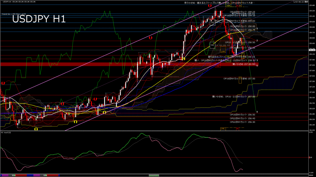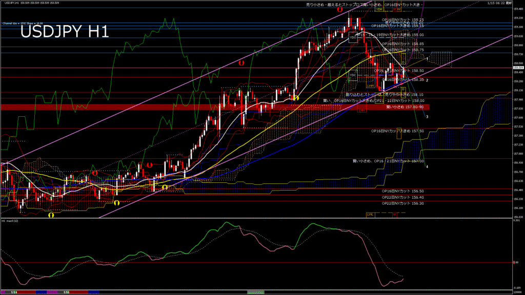 情報 USDJPY-H1移動平均線と現在値(RSI)-2026.1.15 15:00:00