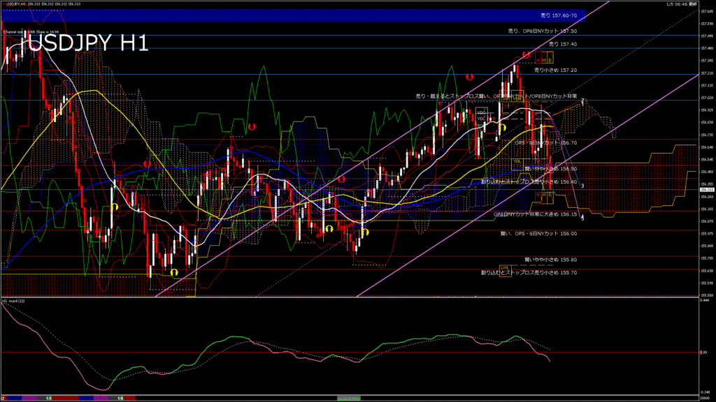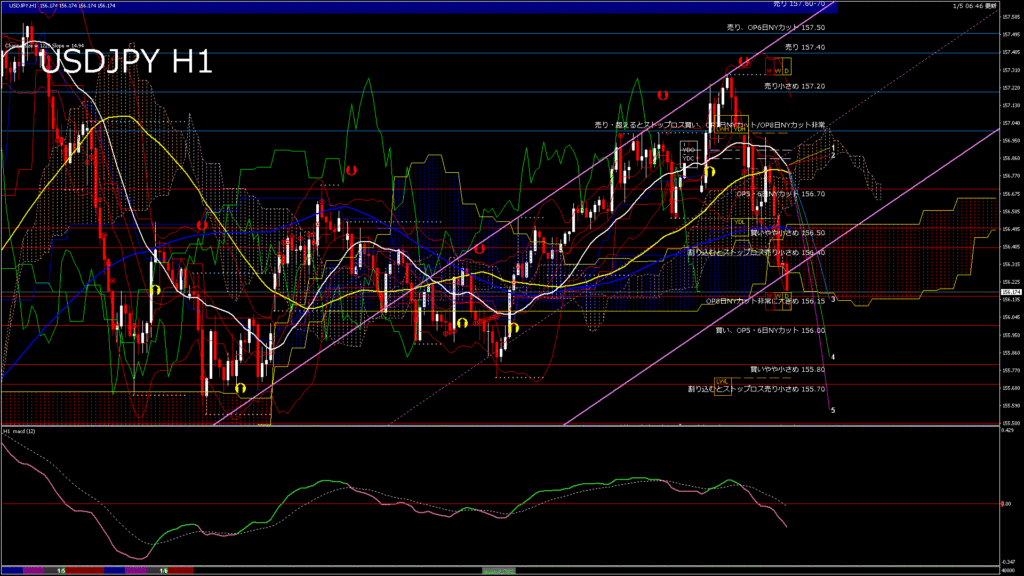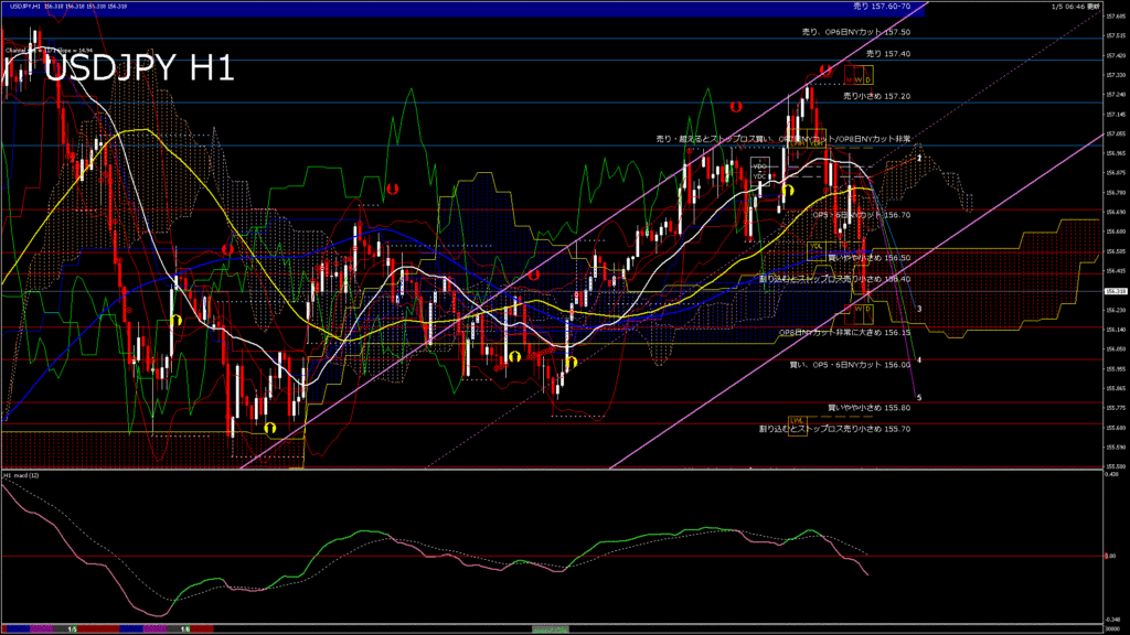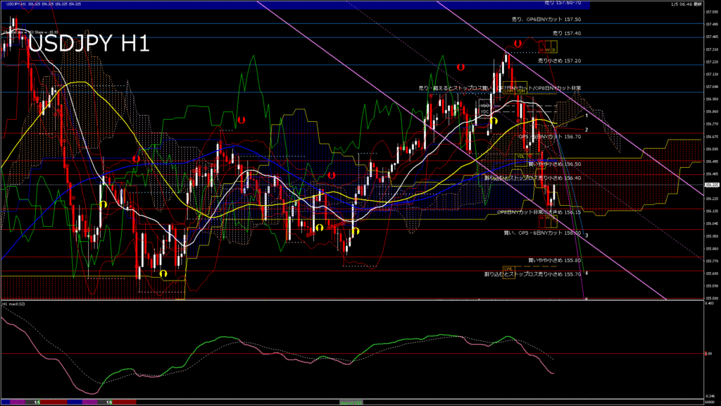 情報 USDJPY-H1移動平均線と現在値(RSI)-2026.1.6 9:00:00