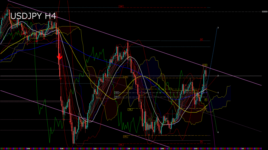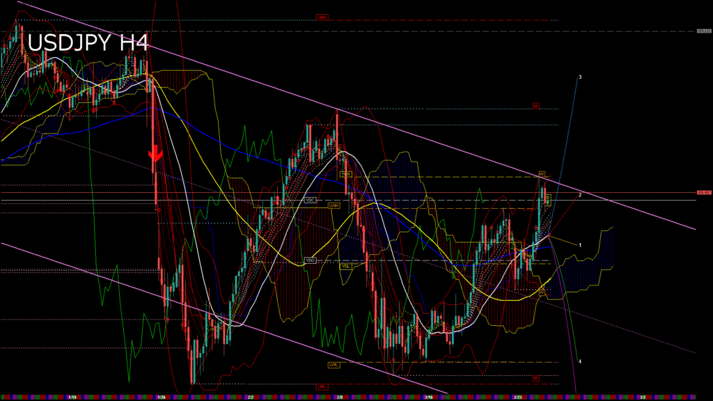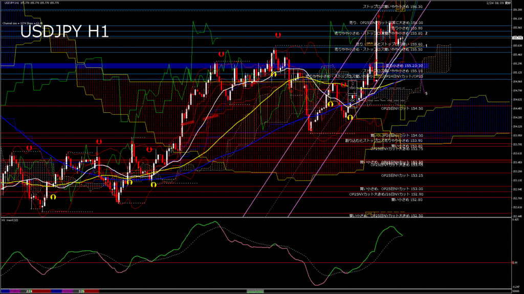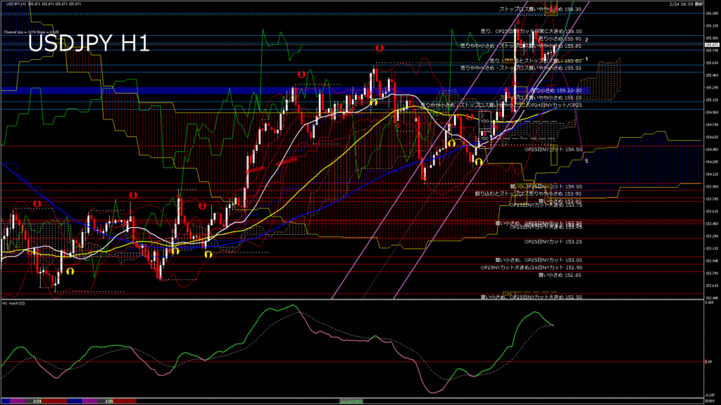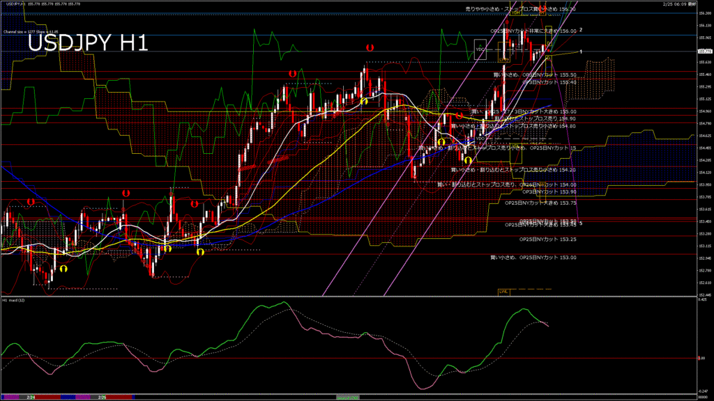 情報 USDJPY-H1移動平均線と現在値(RSI)-2026.2.25 9:00:00