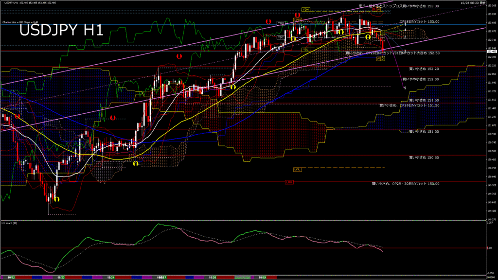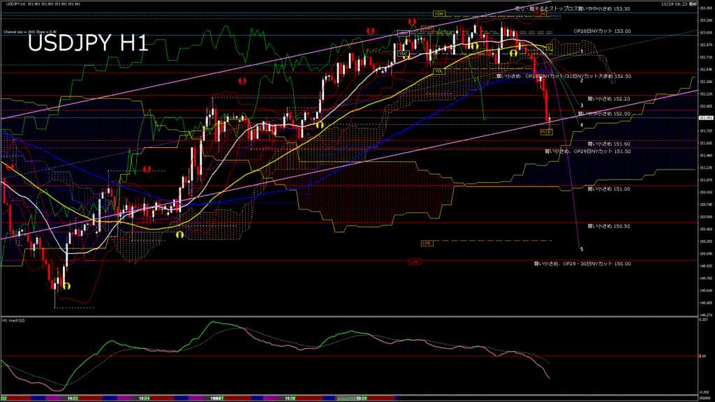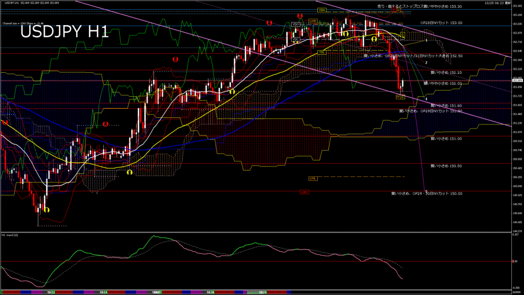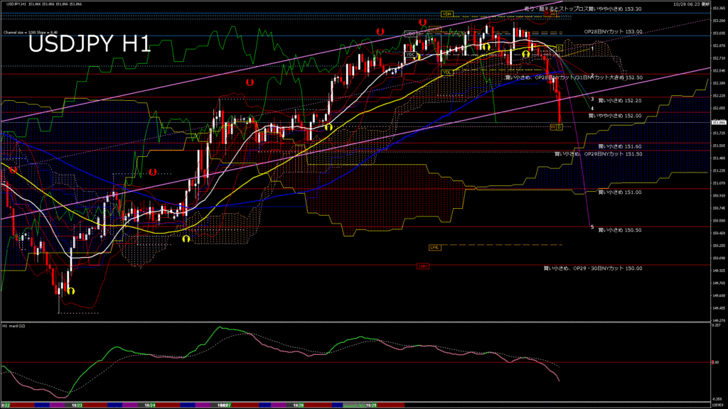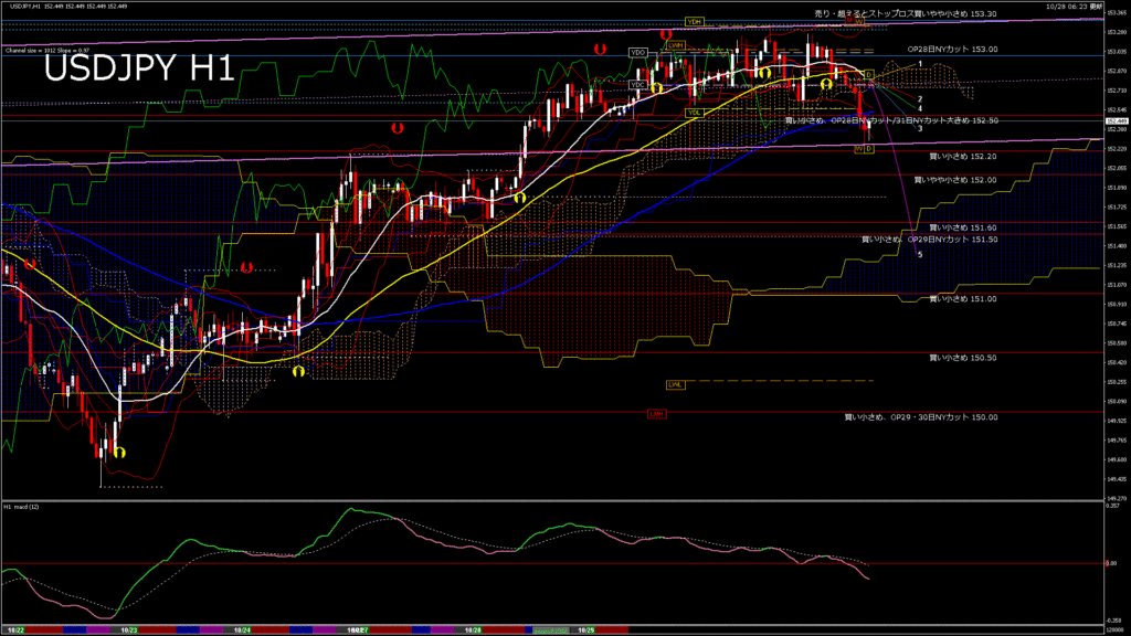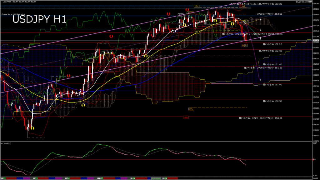 情報 USDJPY-H1移動平均線と現在値(RSI)-2025.10.28 17:00:00