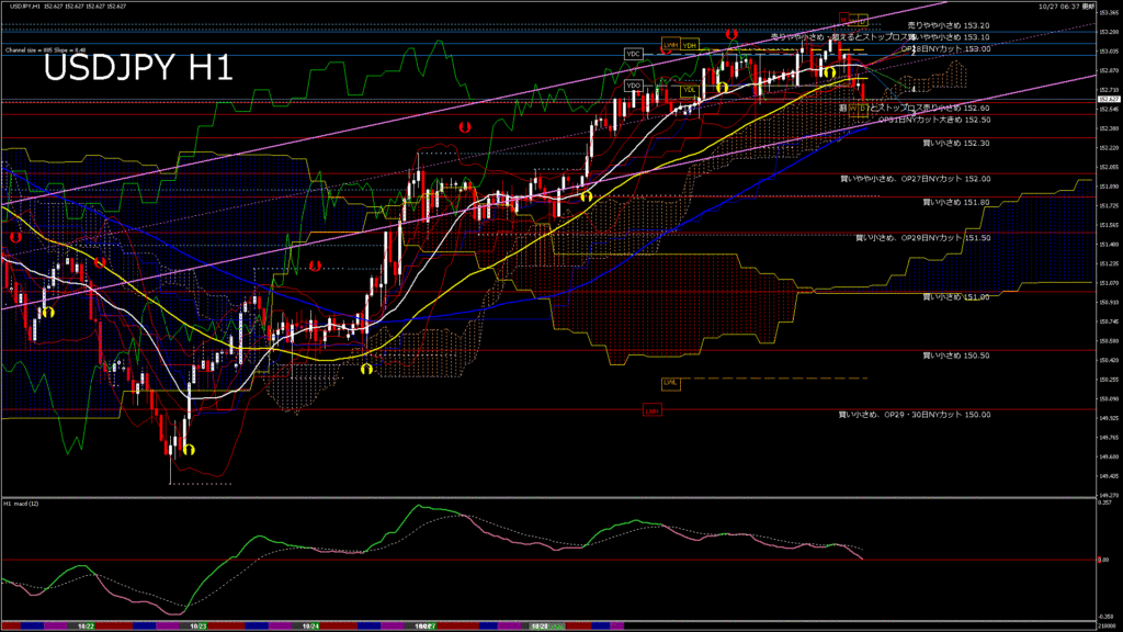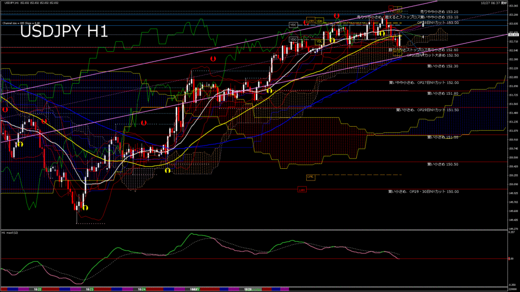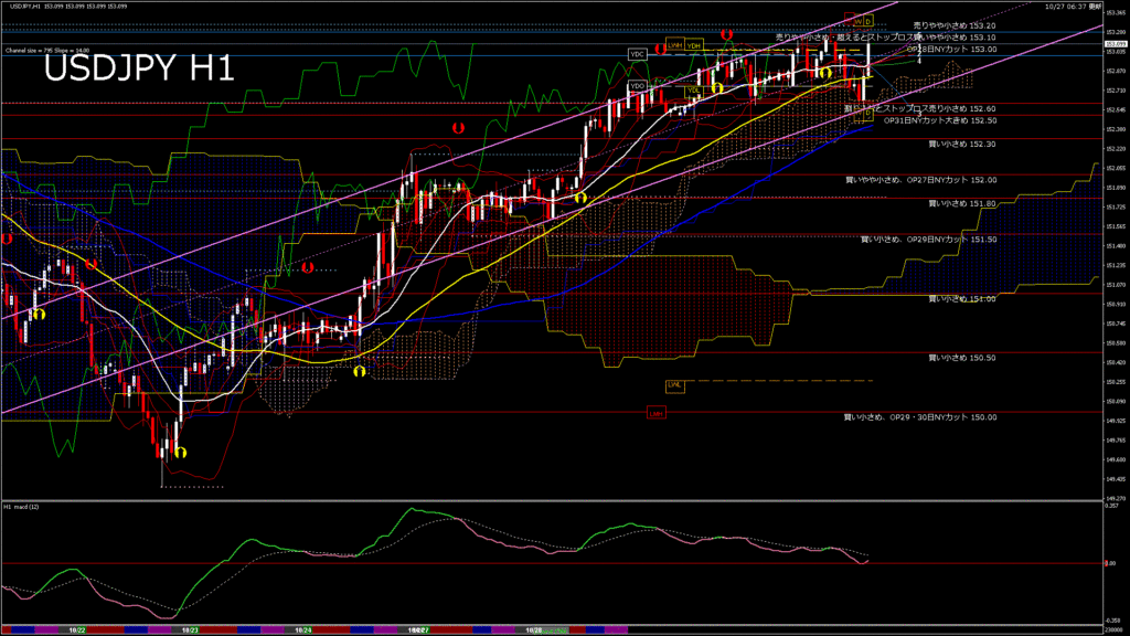 情報 USDJPY-H1移動平均線と現在値(RSI)-2025.10.28 3:00:00