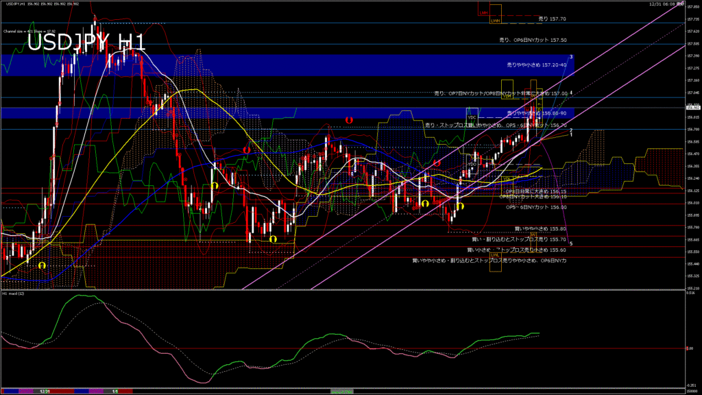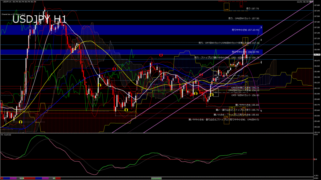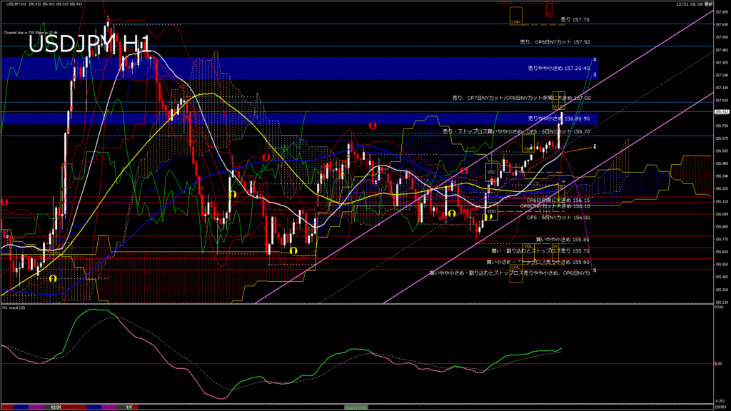 情報 USDJPY-H4移動平均線と現在値(RSI)-2026.1.2 15:00:06