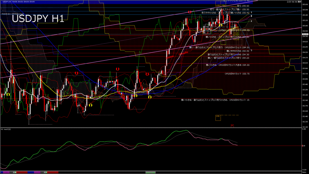 情報 USDJPY-H1移動平均線と現在値(RSI)-2026.2.23 9:00:00