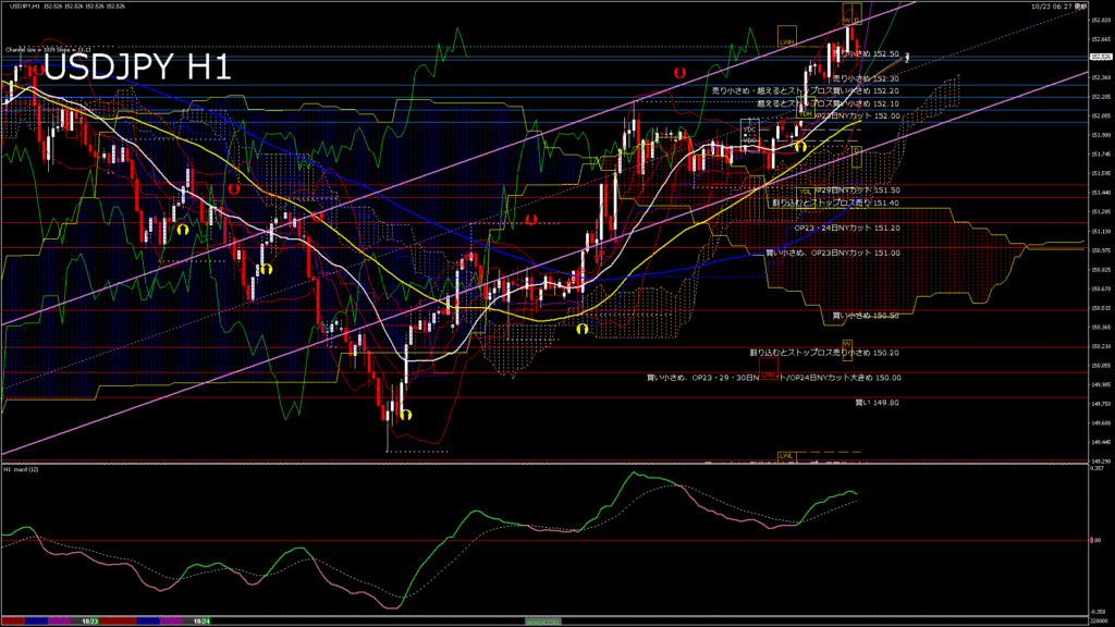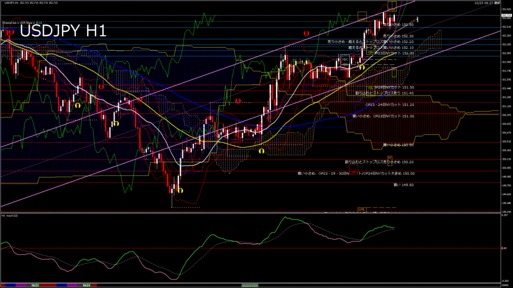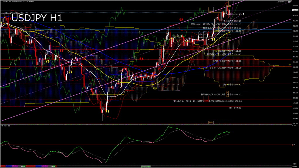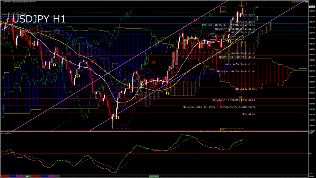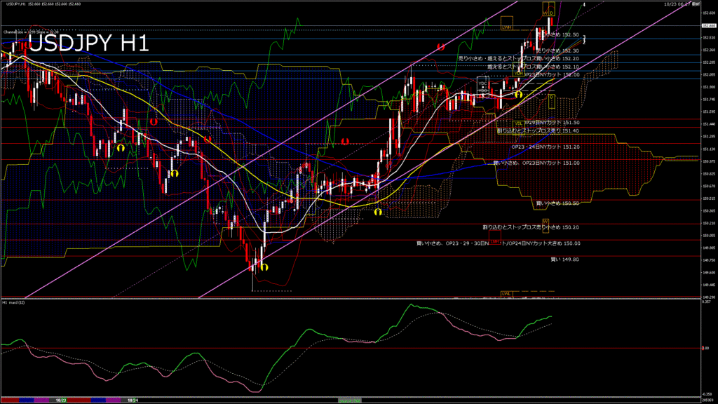 情報 USDJPY-H1移動平均線と現在値(RSI)-2025.10.24 3:00:00