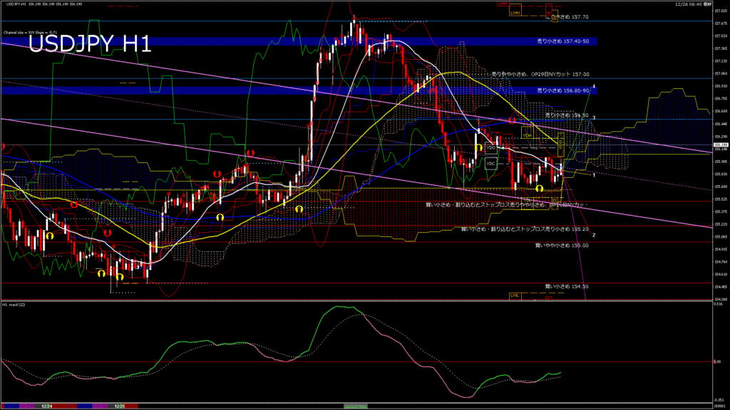 情報 USDJPY-H1移動平均線と現在値(RSI)-2025.12.26 19:00:00