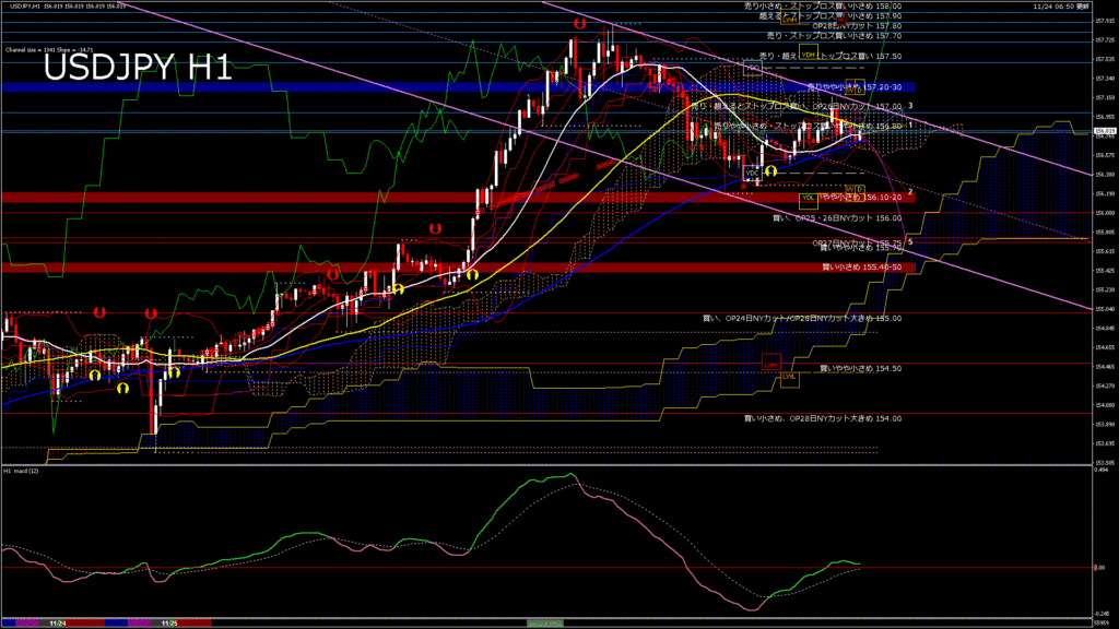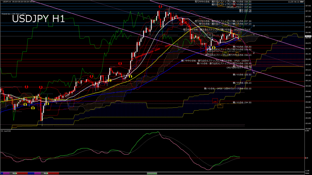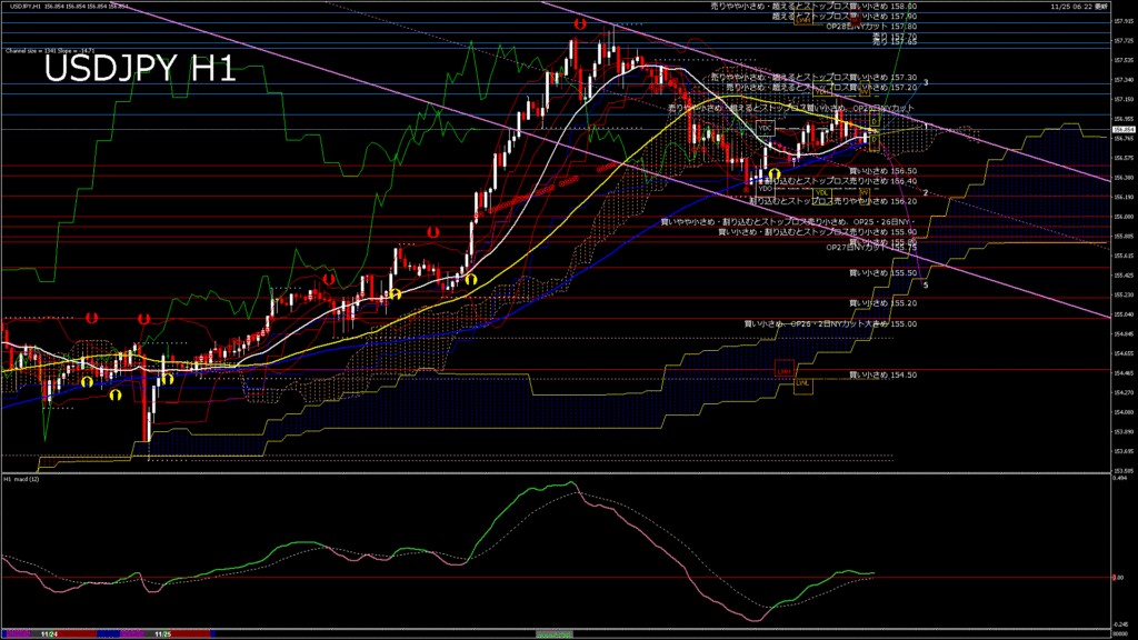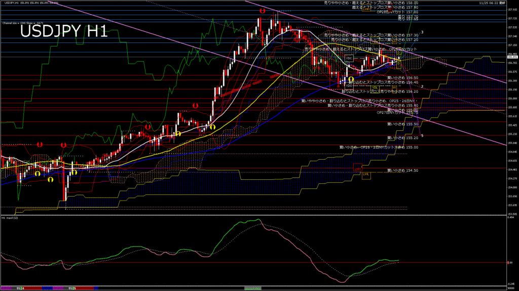 情報 USDJPY-H1移動平均線と現在値(RSI)-2025.11.25 13:00:00