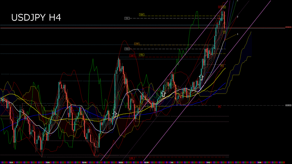 情報 USDJPY-H1移動平均線と現在値(RSI)-2026.1.14 22:00:00