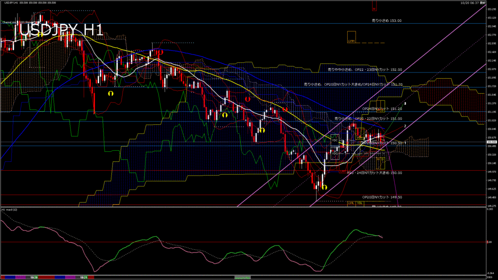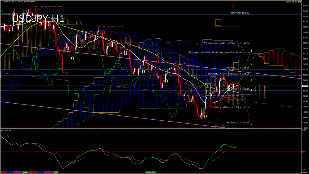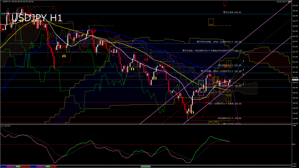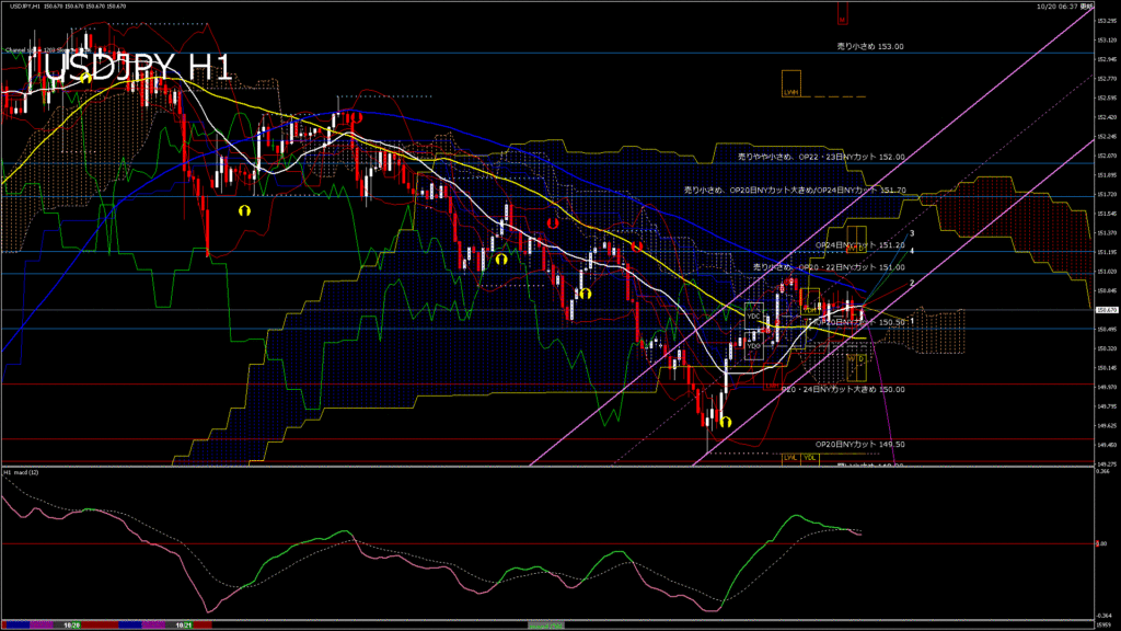 情報 USDJPY-H1移動平均線と現在値(RSI)-2025.10.21 5:00:00