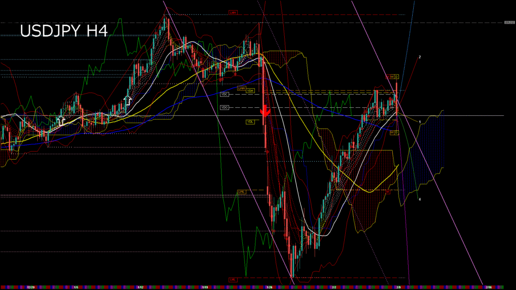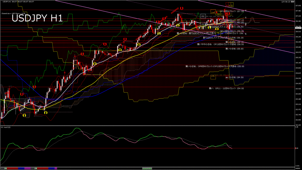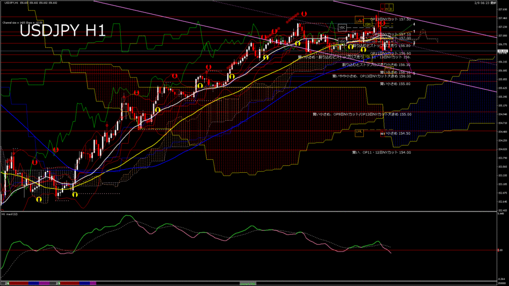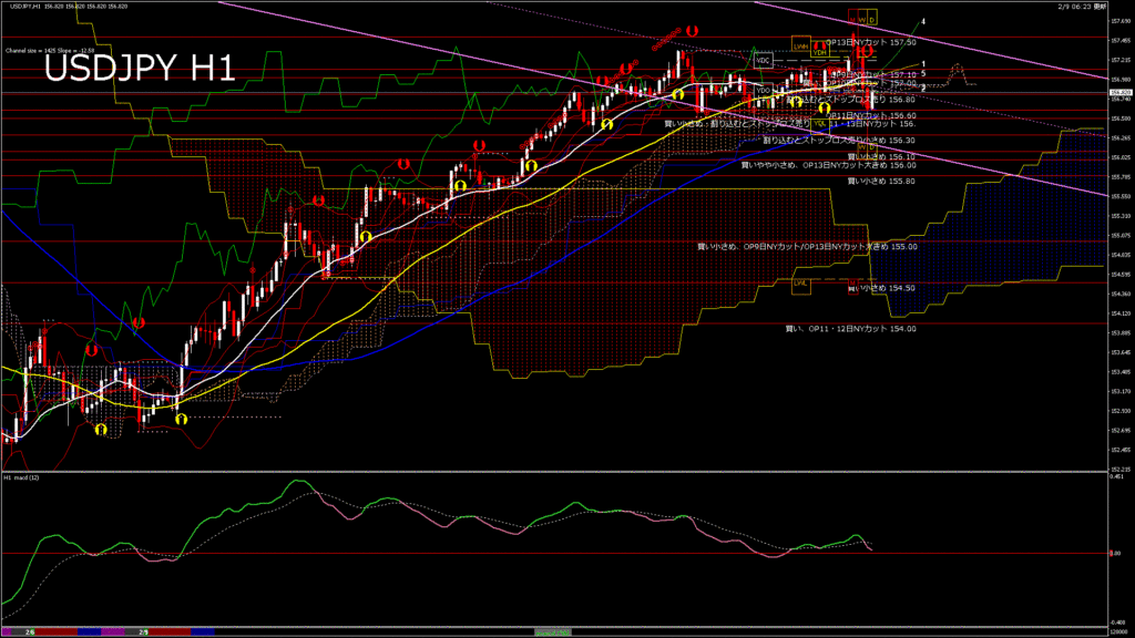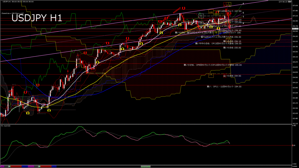 情報 USDJPY-H1移動平均線と現在値(RSI)-2026.2.9 15:00:00
