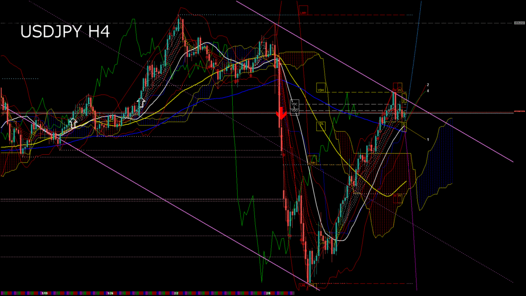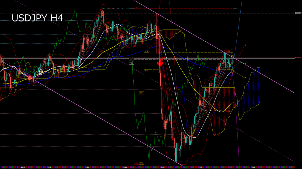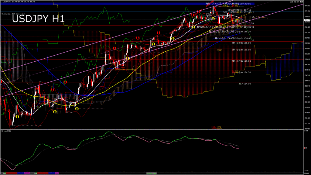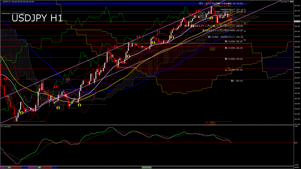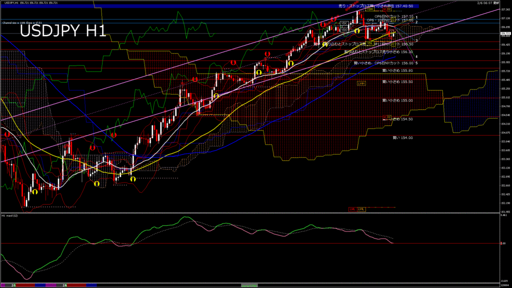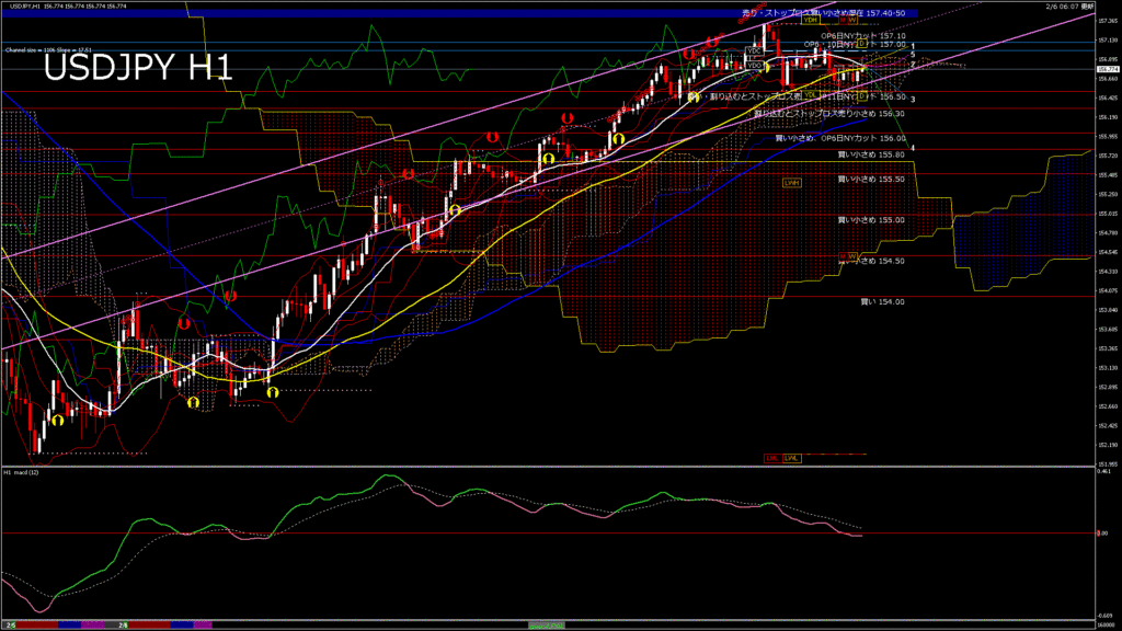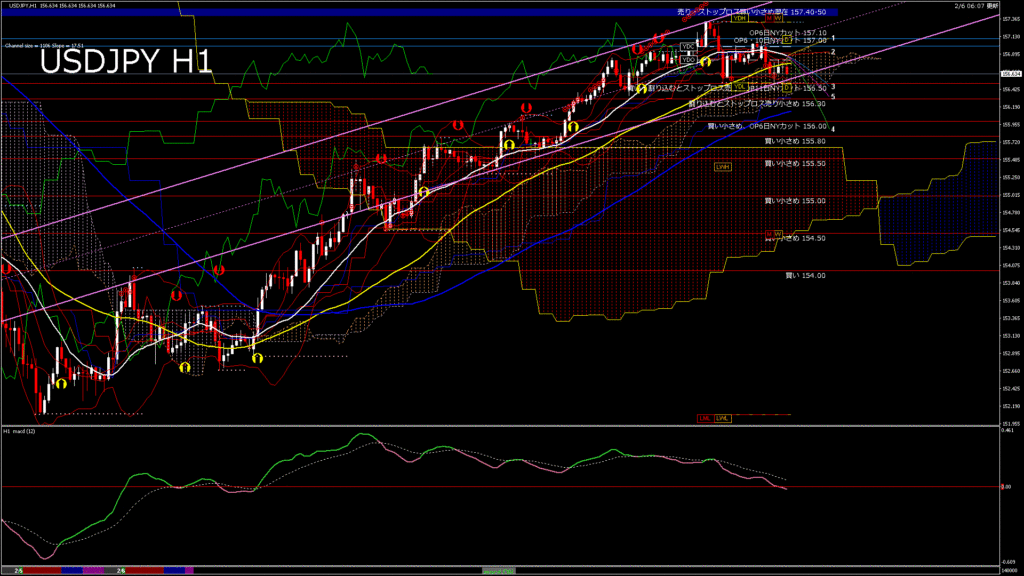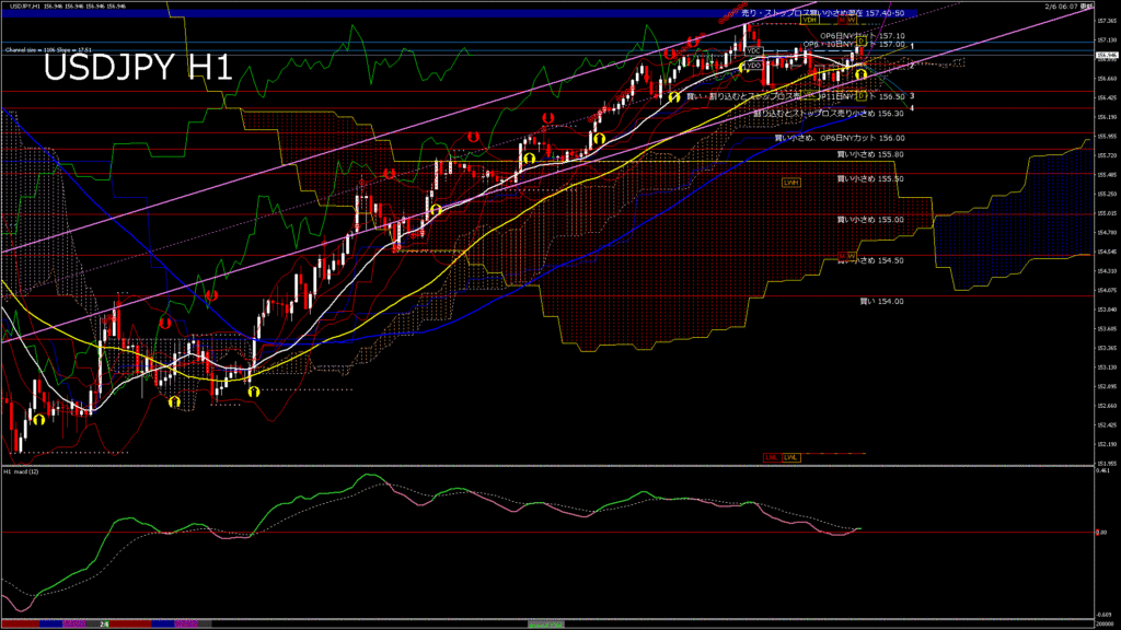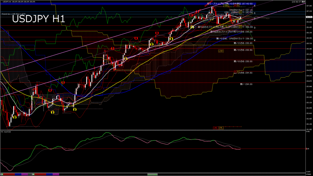 情報 USDJPY-H1移動平均線と現在値(RSI)-2026.2.6 20:00:00