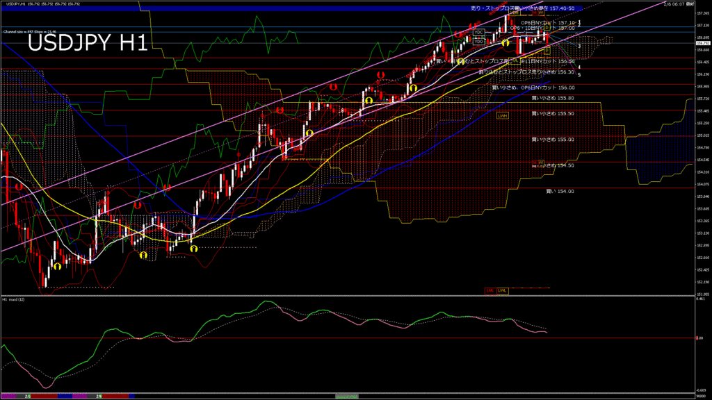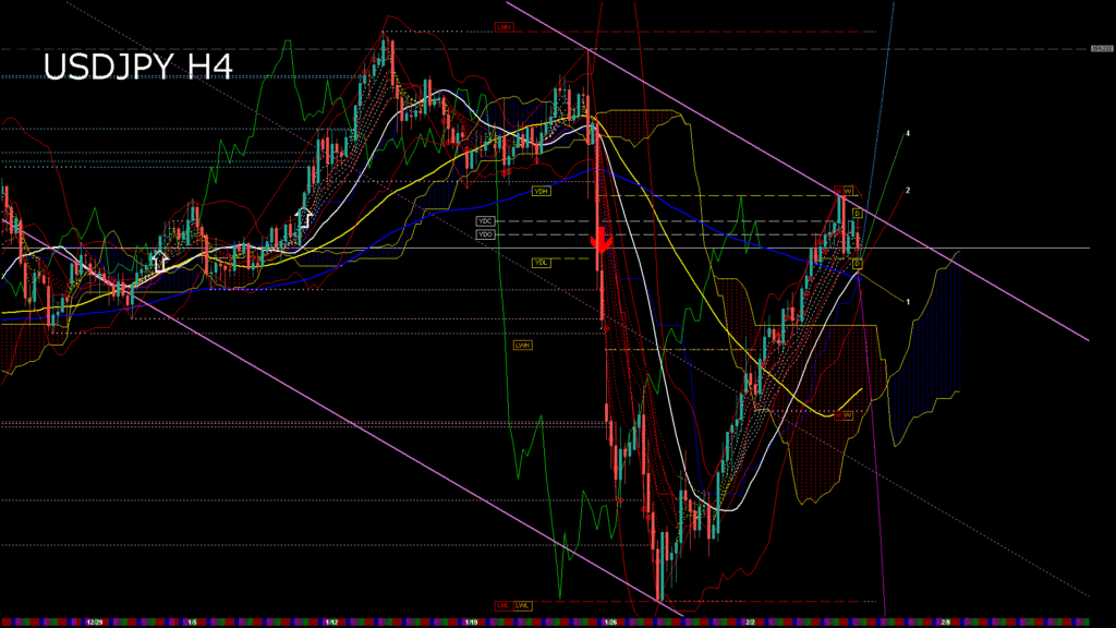 情報 USDJPY-H4移動平均線と現在値(RSI)-2026.2.6 11:00:05