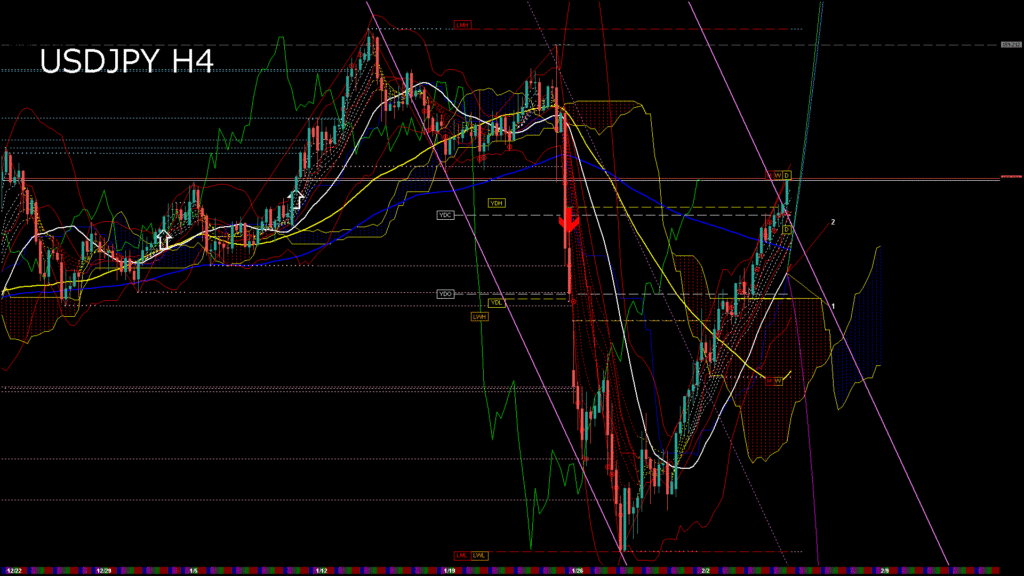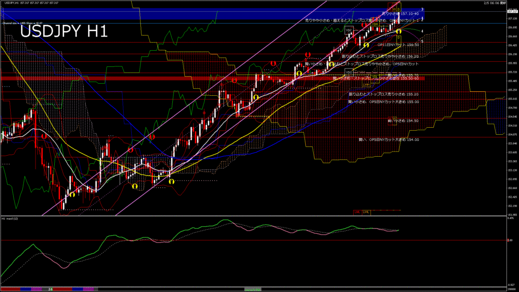 情報 USDJPY-H1移動平均線と現在値(RSI)-2026.2.6 2:00:00