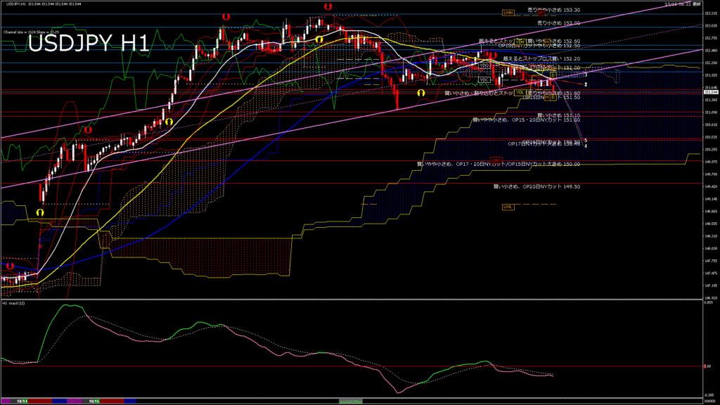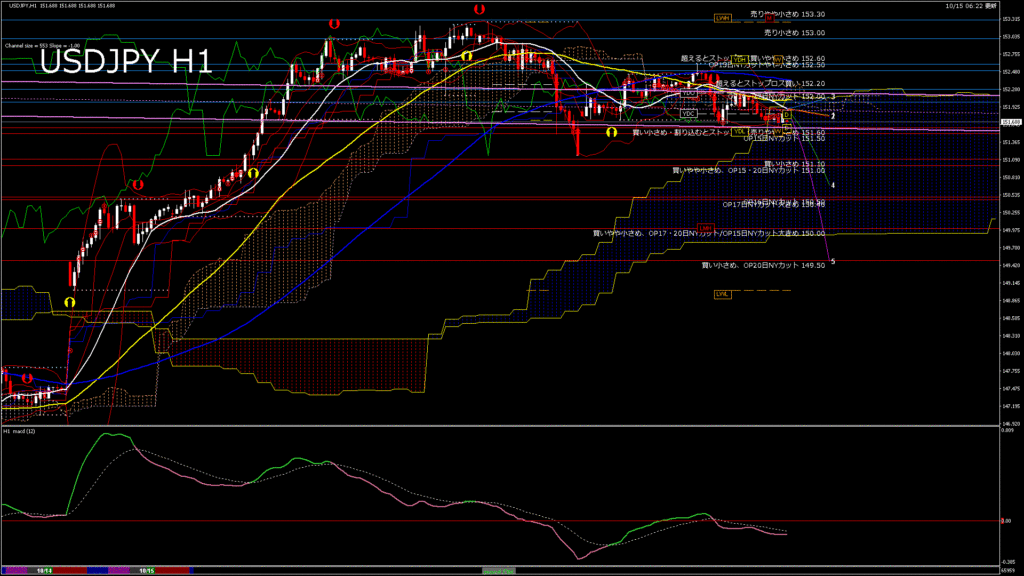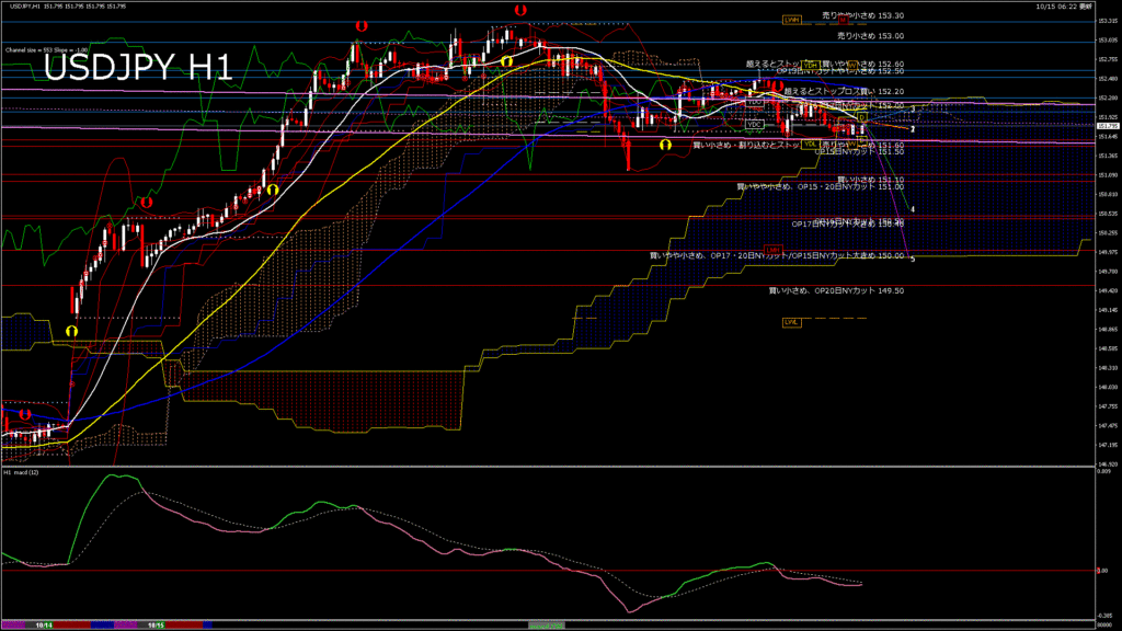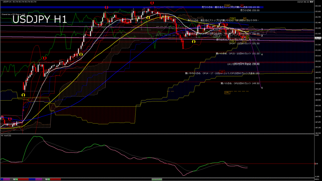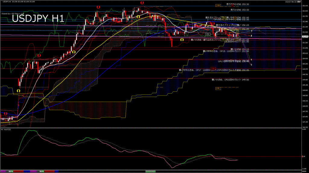 情報 USDJPY-H1移動平均線と現在値(RSI)-2025.10.15 13:00:00