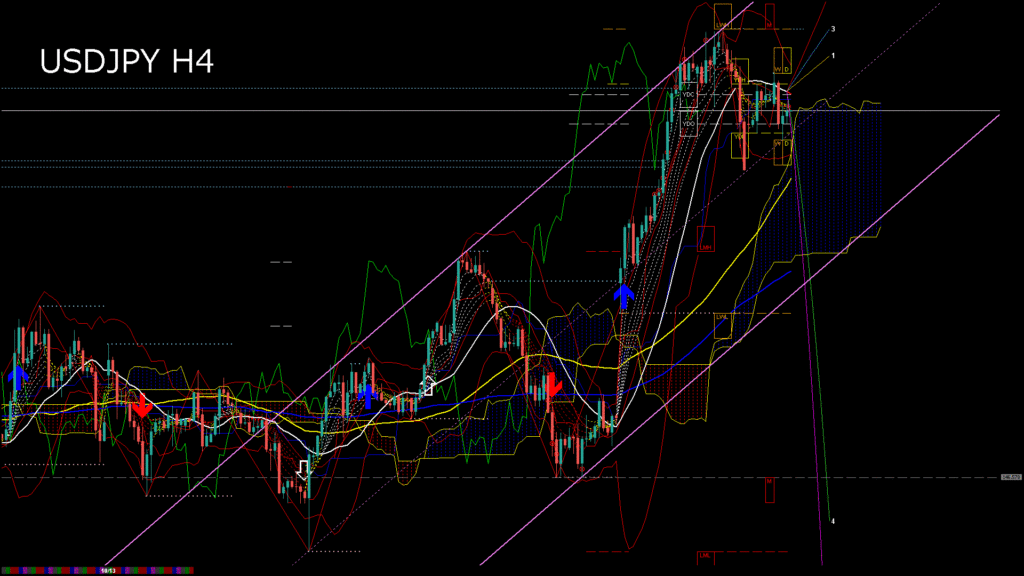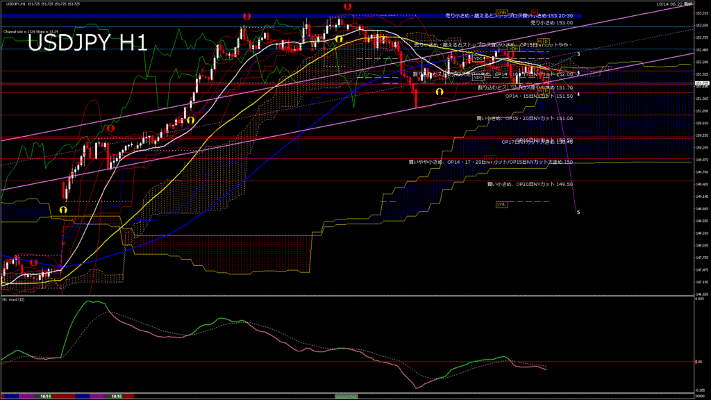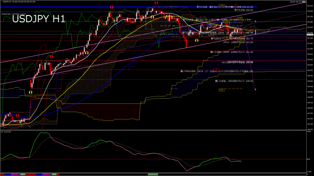 情報 USDJPY-H4移動平均線と現在値(RSI)-2025.10.15 6:00:32