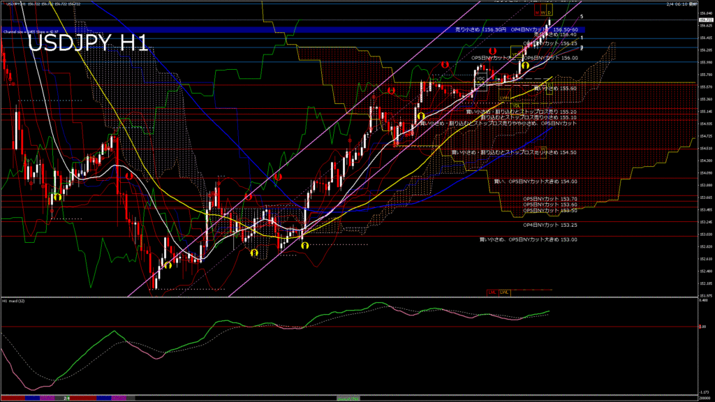 USDJPY-H1移動平均線と現在値(RSI)-2026.2.4 16:00:00