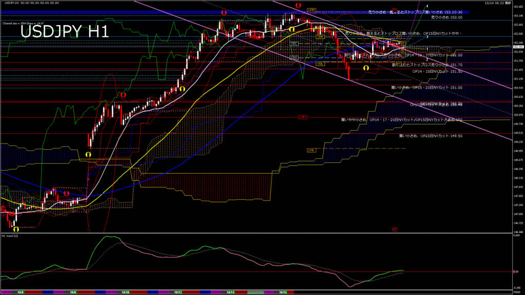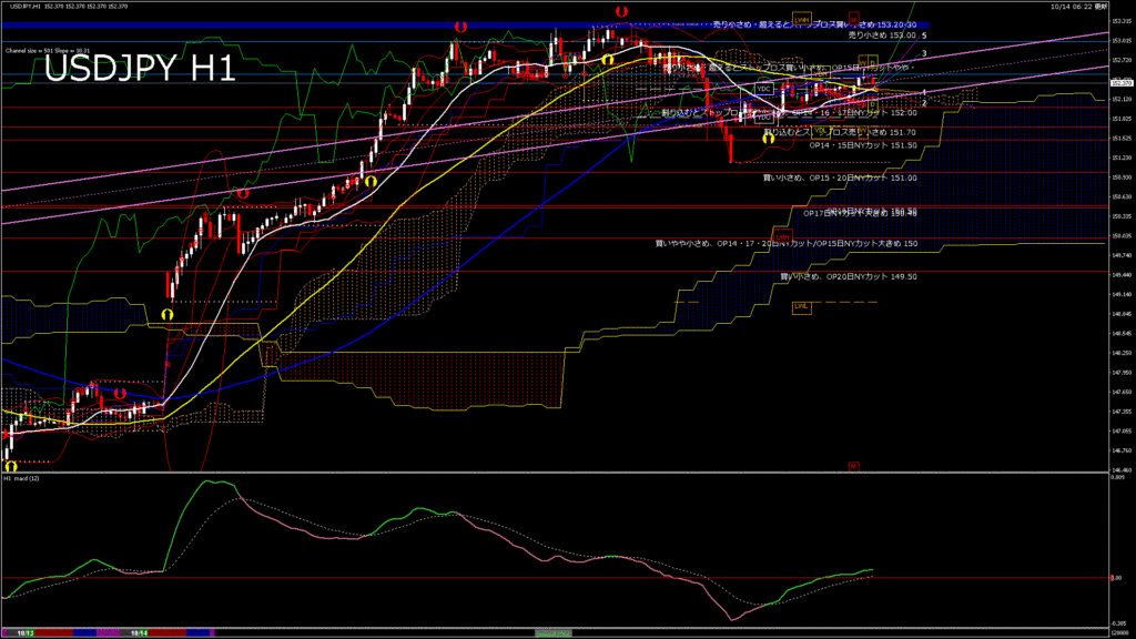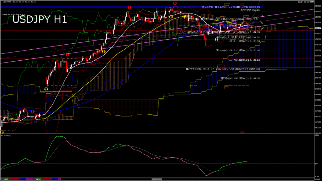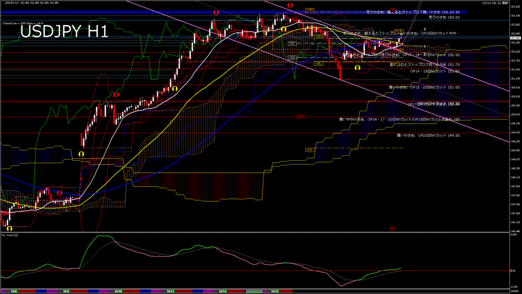 情報 USDJPY-H1移動平均線と現在値(RSI)-2025.10.14 14:00:00