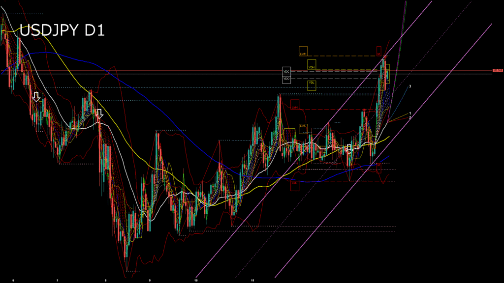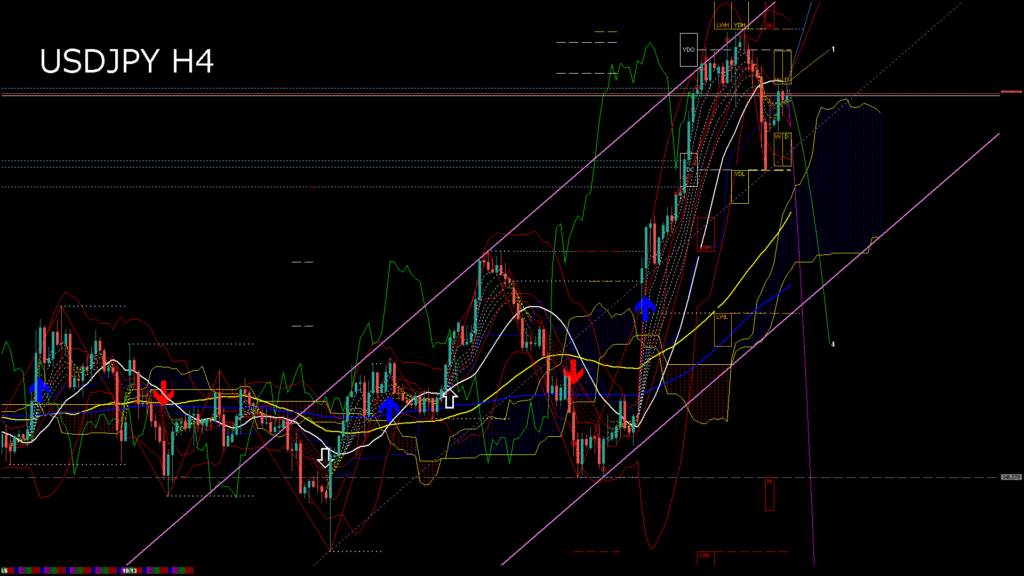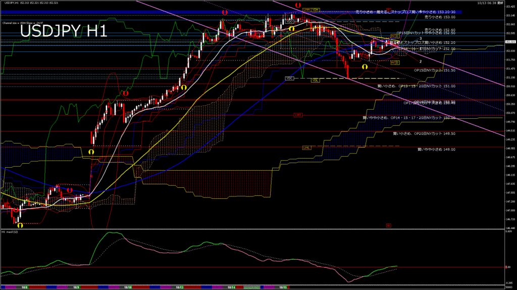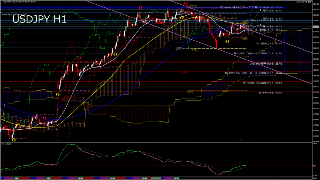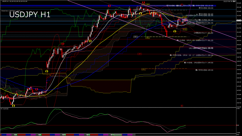 情報 USDJPY-H4移動平均線と現在値(RSI)-2025.10.14 6:00:30
