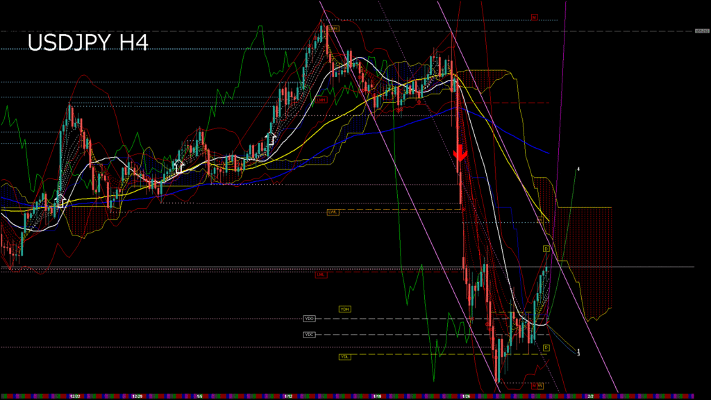 USDJPY-H4移動平均線と現在値(RSI)-2026.1.31 3:00:00