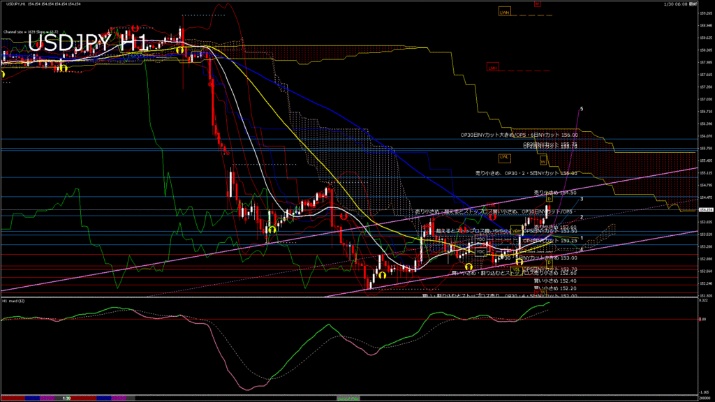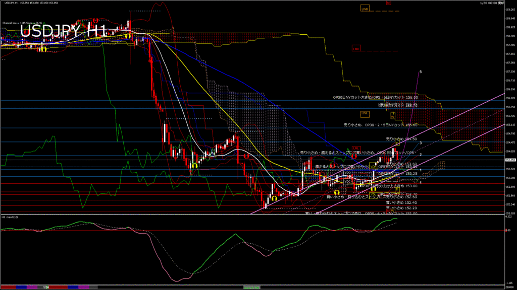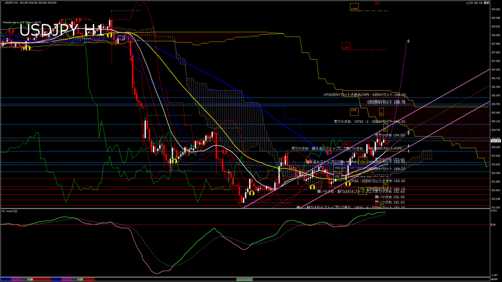 USDJPY-H1移動平均線と現在値(RSI)-2026.1.30 21:00:00