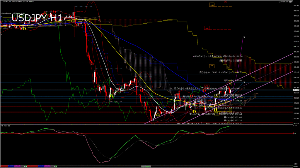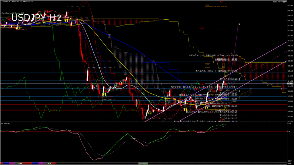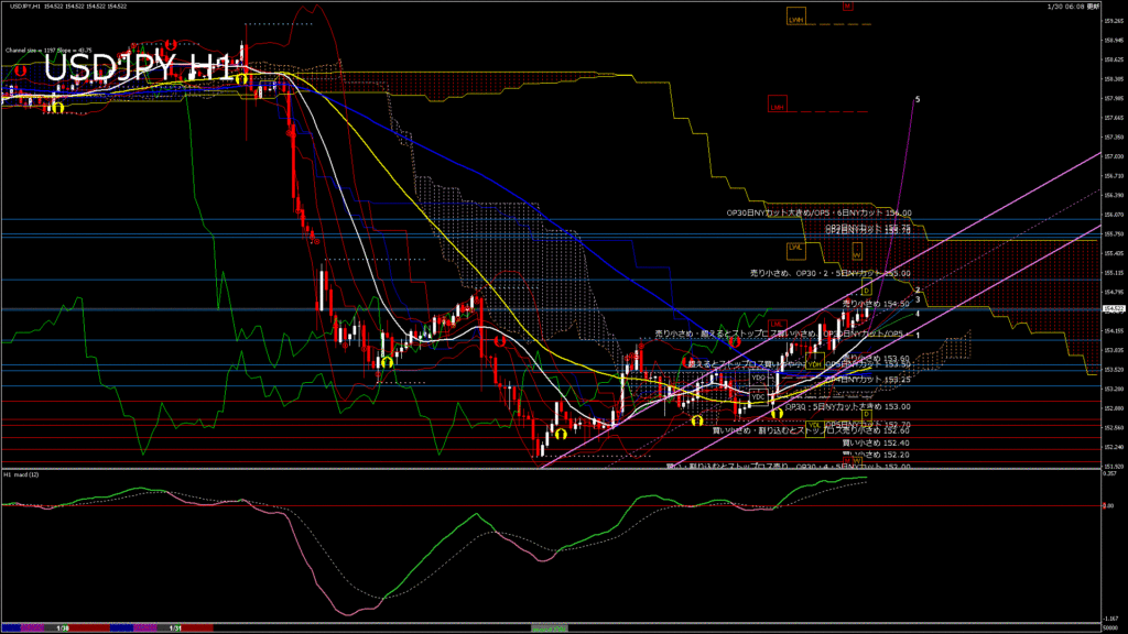USDJPY-H1移動平均線と現在値(RSI)-2026.1.31 5:00:00