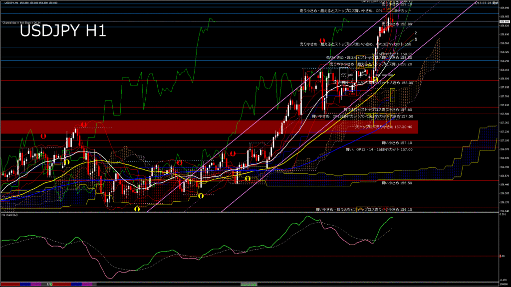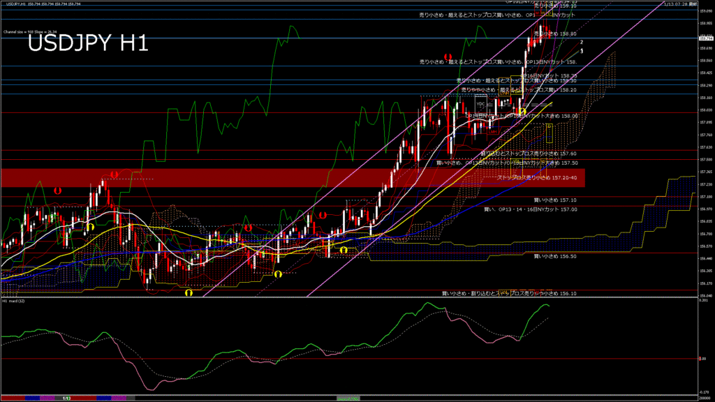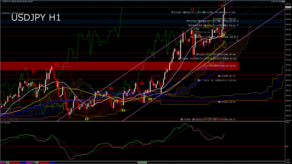 情報 USDJPY-H1移動平均線と現在値(RSI)-2026.1.13 20:00:00