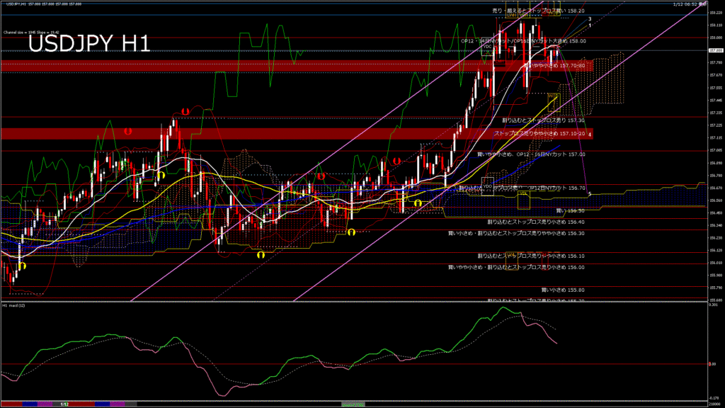 情報 USDJPY-H1移動平均線と現在値(RSI)-2026.1.13 3:00:00