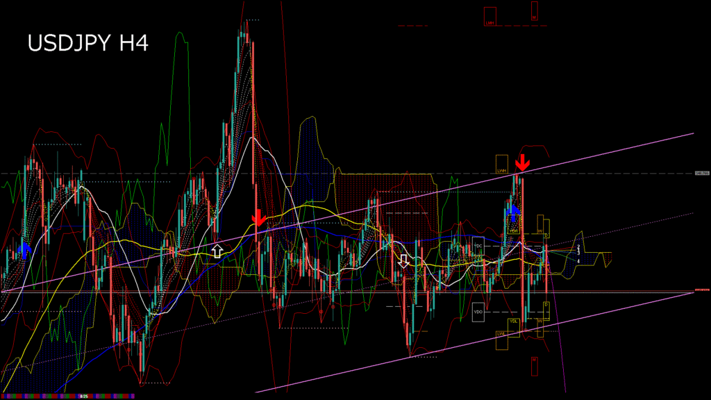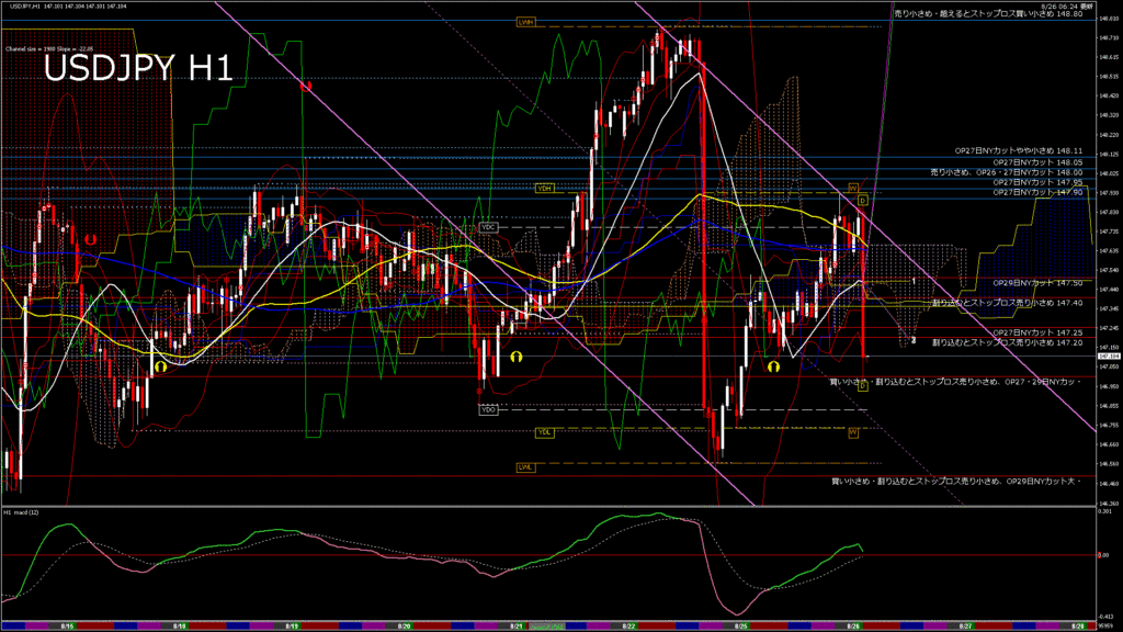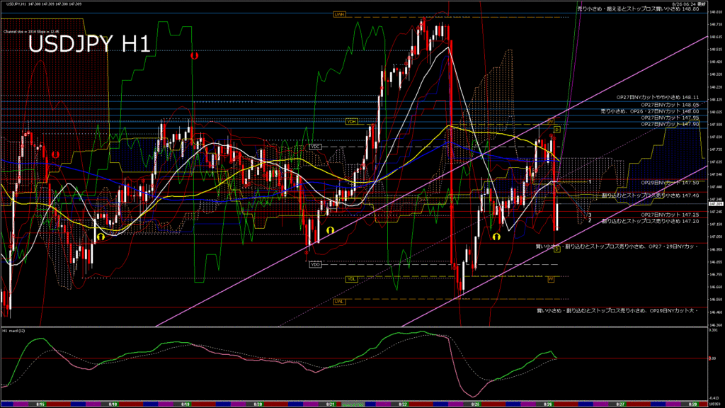 情報 USDJPY-H1移動平均線と現在値(RSI)-2025.8.26 16:00:00