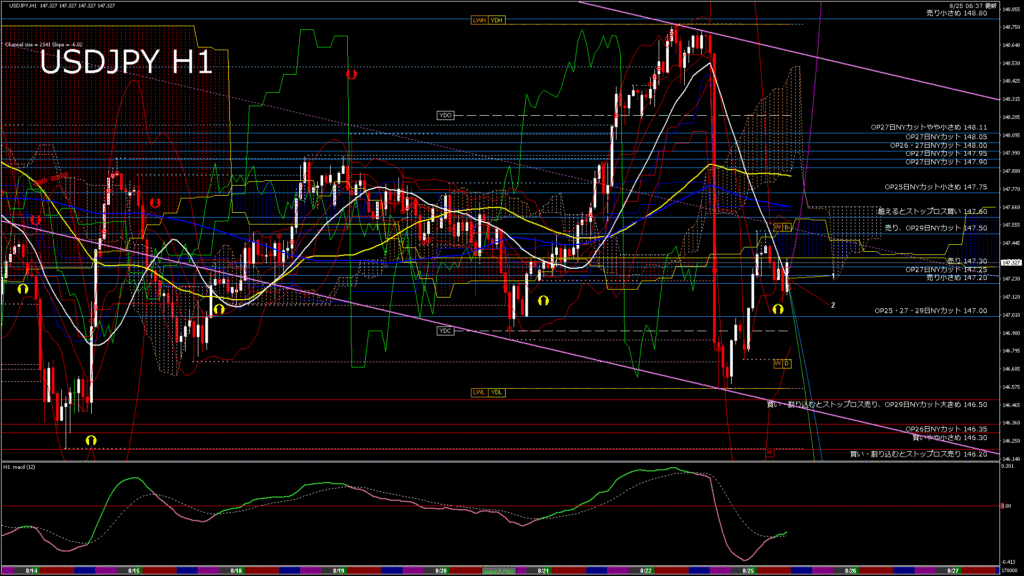 情報 USDJPY-H4移動平均線と現在値(RSI)-2025.8.25 18:00:05