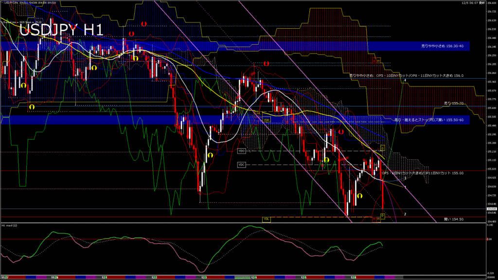 情報 USDJPY-H1移動平均線と現在値(RSI)-2025.12.5 15:00:00