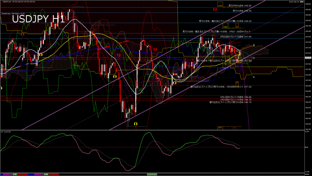 情報 USDJPY-H1移動平均線と現在値(RSI)-2025.8.20 10:00:00