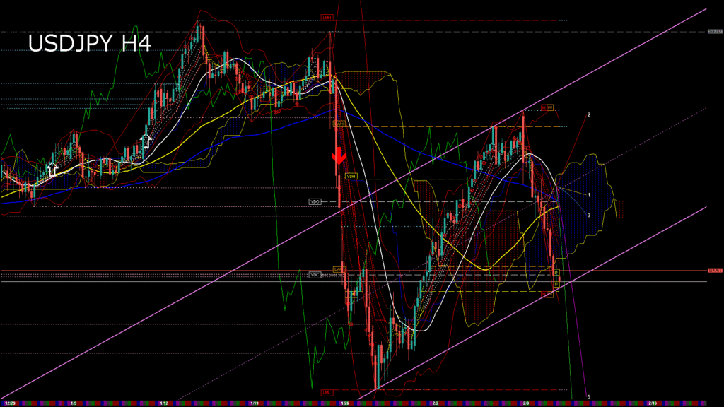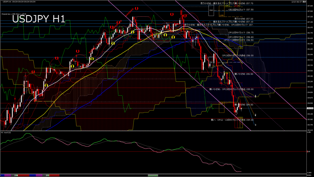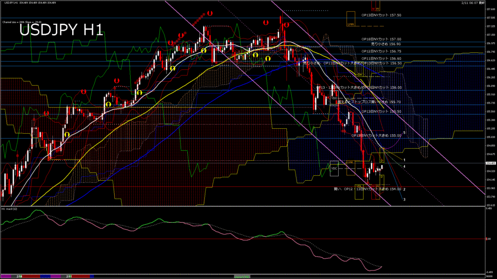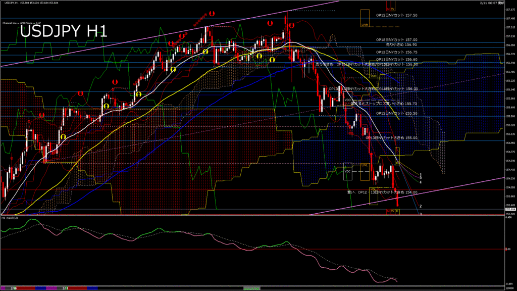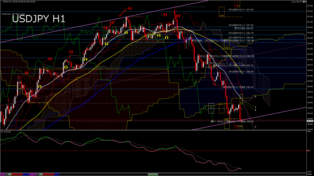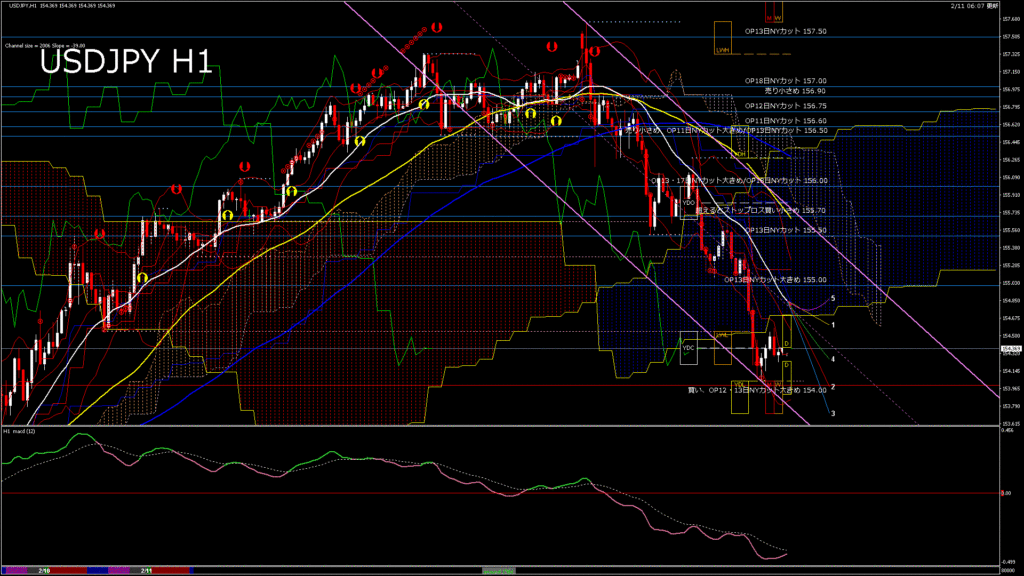 情報 USDJPY-H1移動平均線と現在値(RSI)-2026.2.11 13:00:00