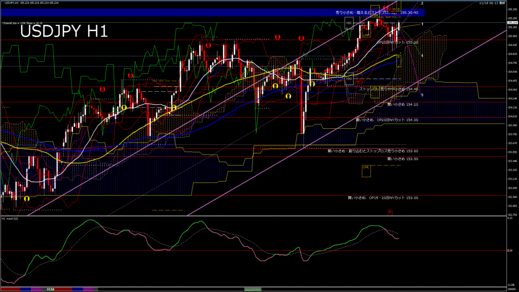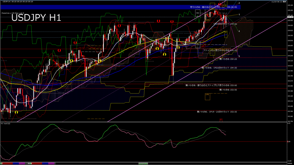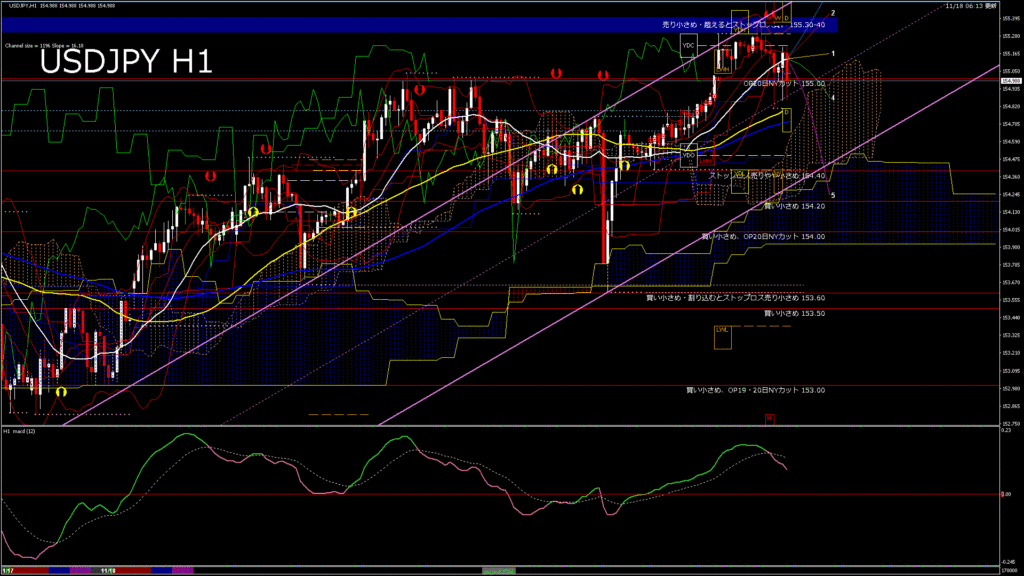 情報 USDJPY-H1移動平均線と現在値(RSI)-2025.11.19 1:00:00