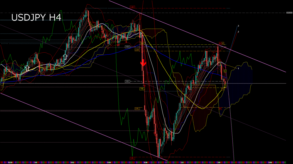 USDJPY-H4移動平均線と現在値(RSI)-2026.2.10 11:00:05