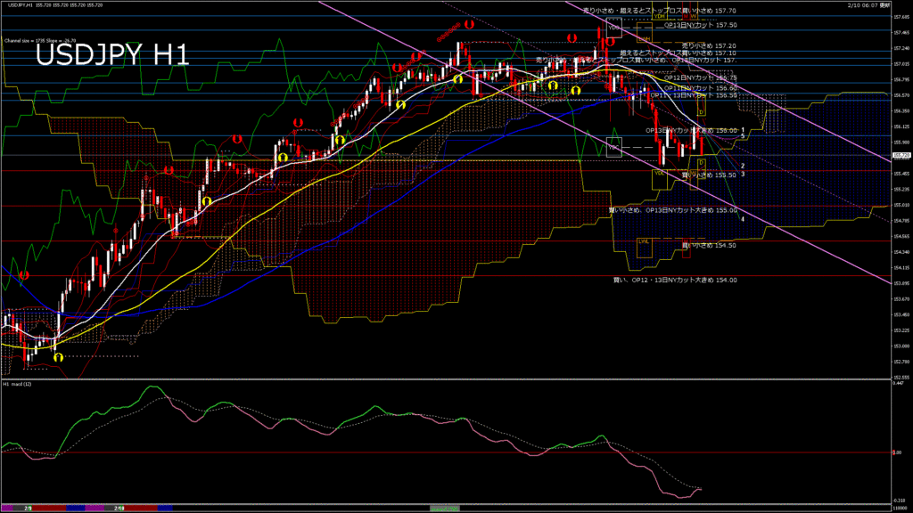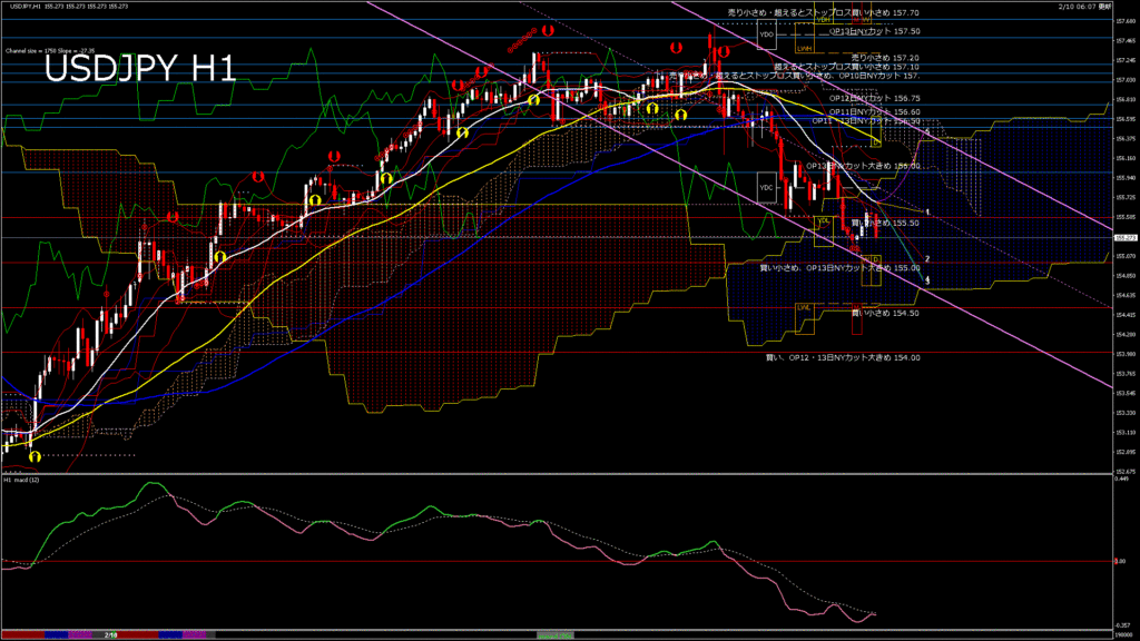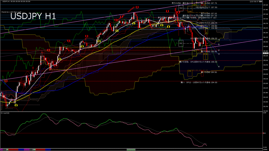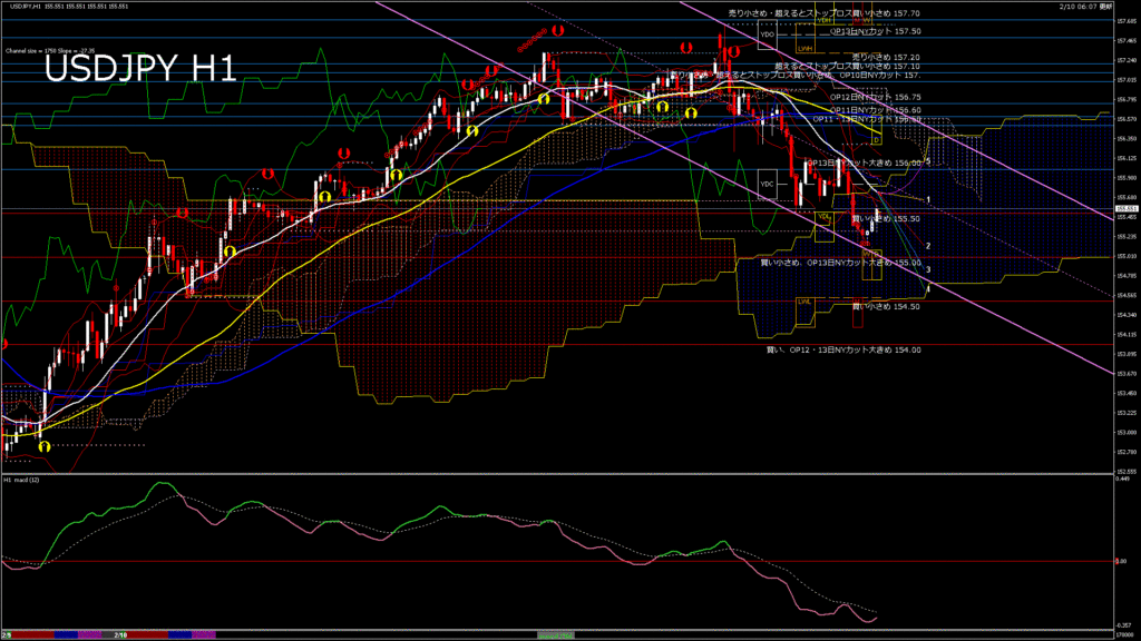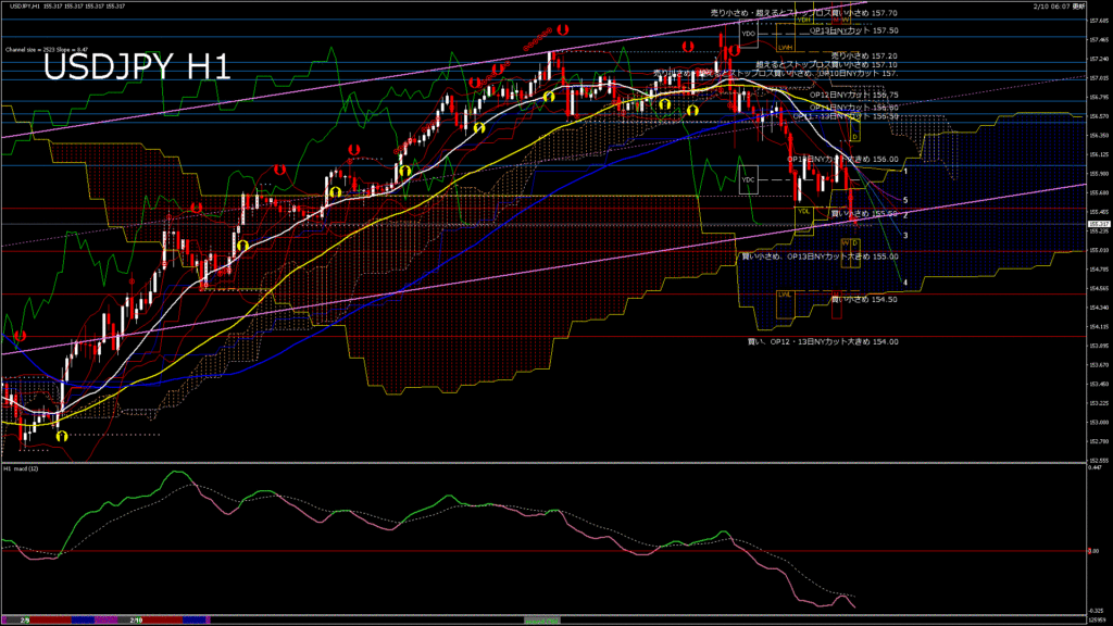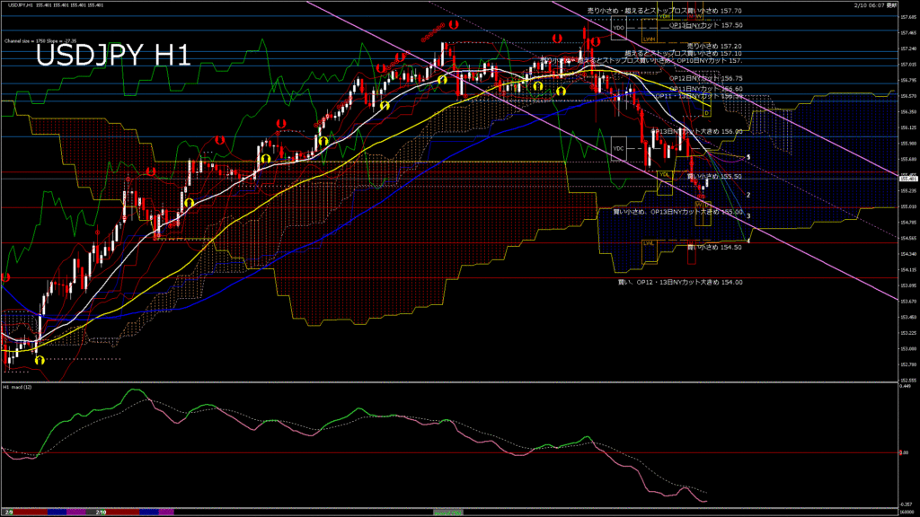 USDJPY-H1移動平均線と現在値(RSI)-2026.2.10 14:00:00