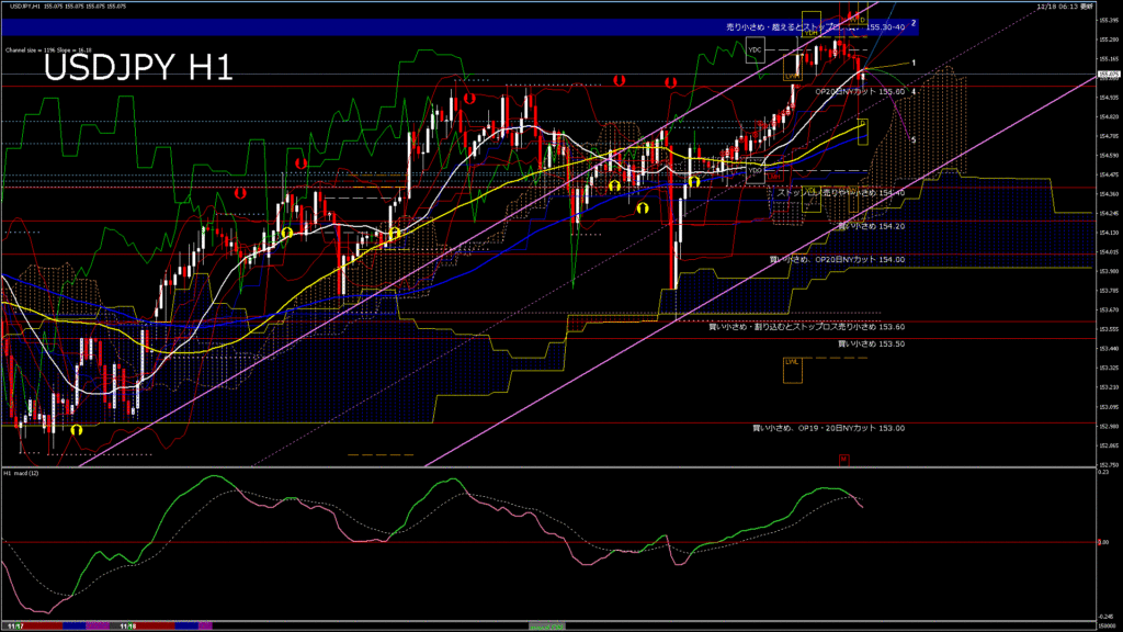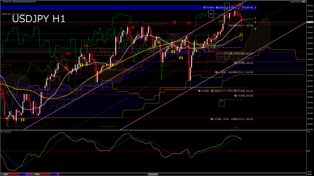 情報 USDJPY-H1移動平均線と現在値(RSI)-2025.11.18 16:00:00