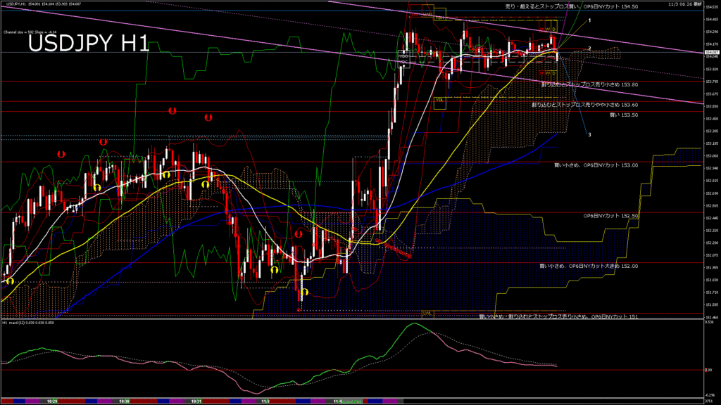 情報 USDJPY-H4移動平均線と現在値(RSI)-2025.11.12 13:00:23