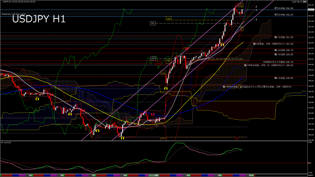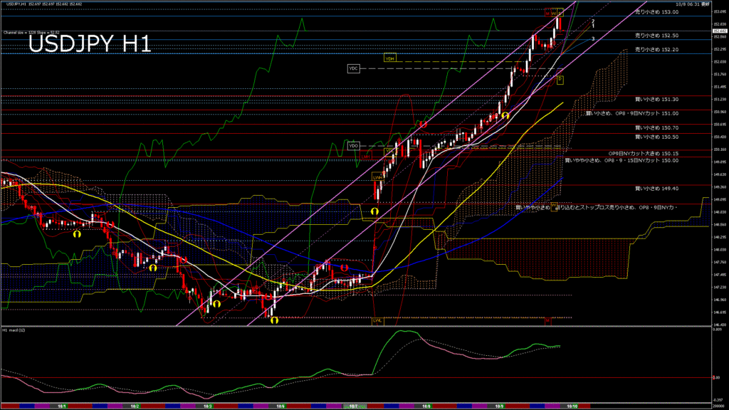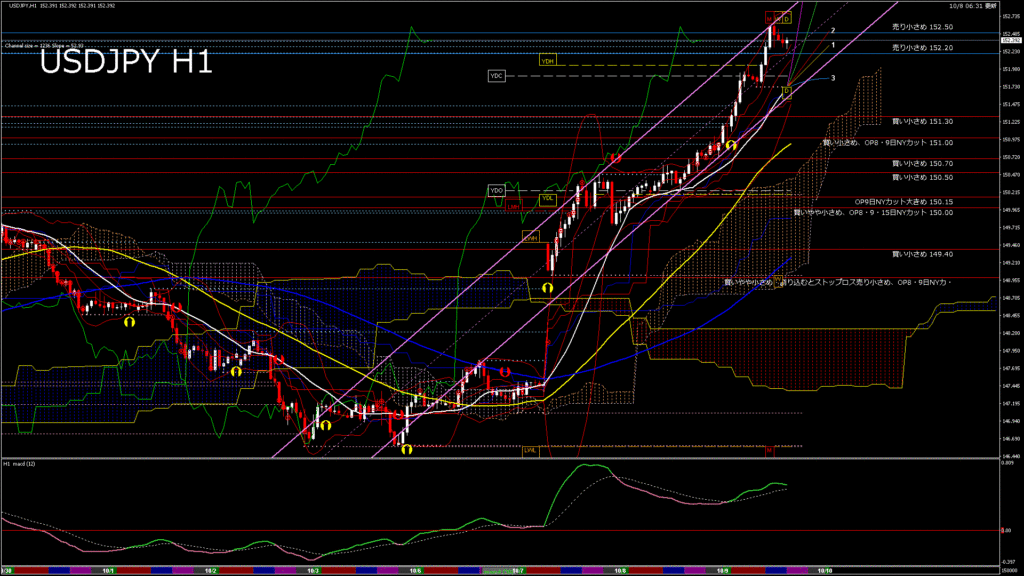 情報 USDJPY-H1移動平均線と現在値(RSI)-2025.10.8 22:00:01