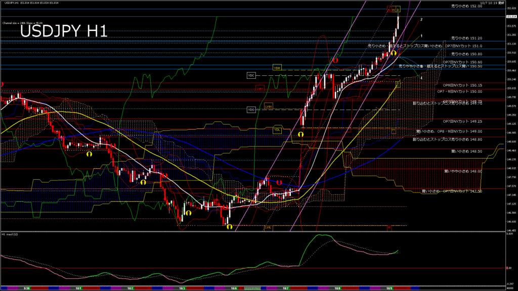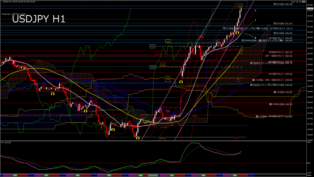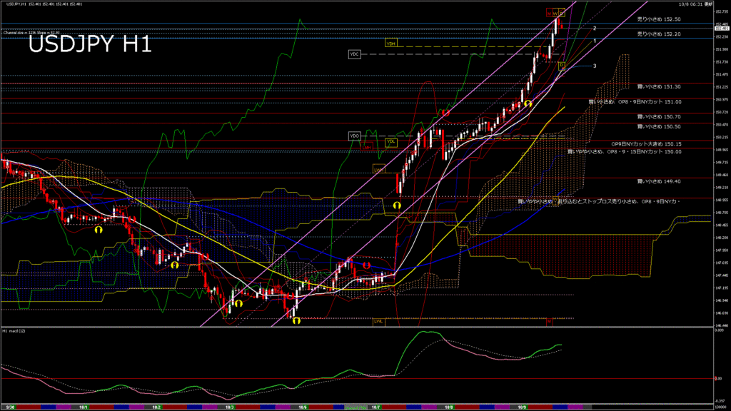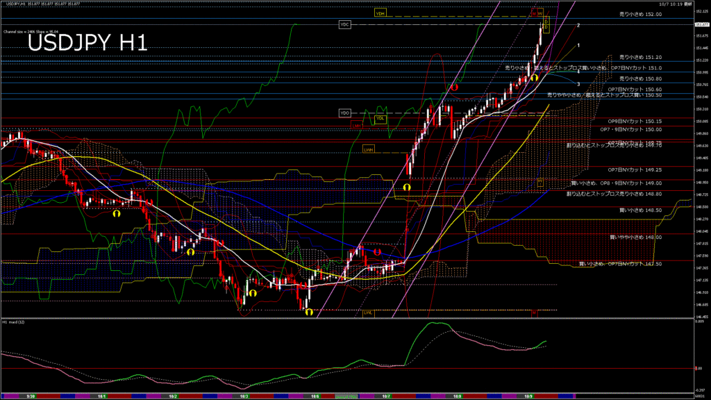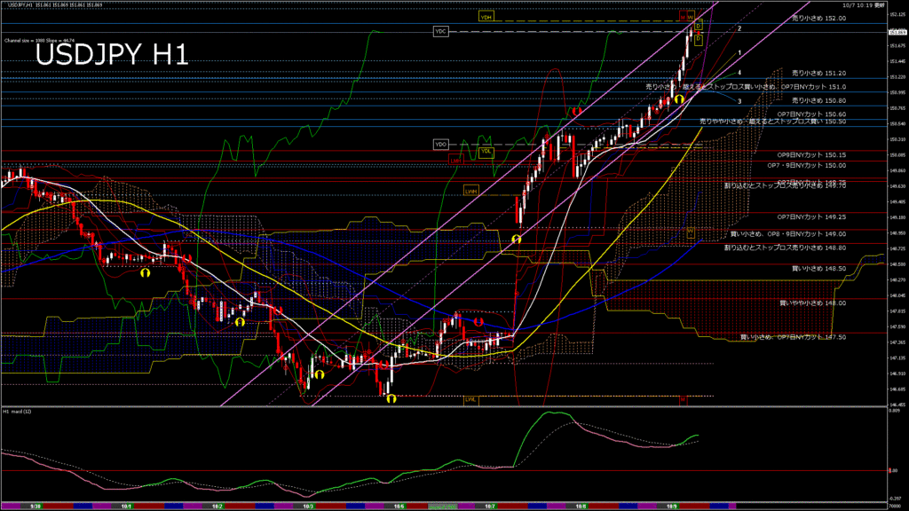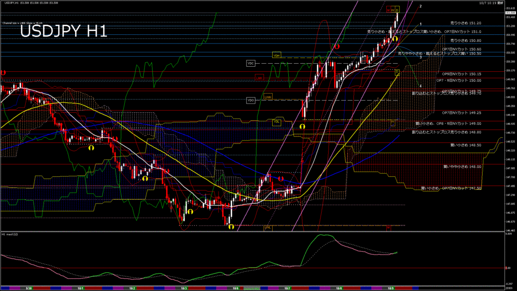 情報 USDJPY-H1移動平均線と現在値(RSI)-2025.10.8 15:00:00