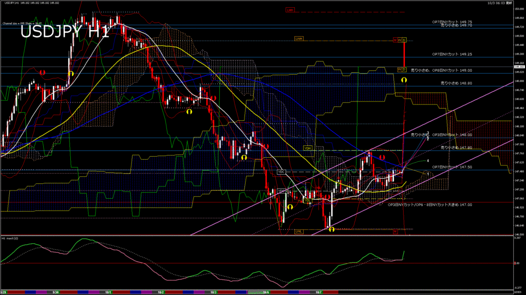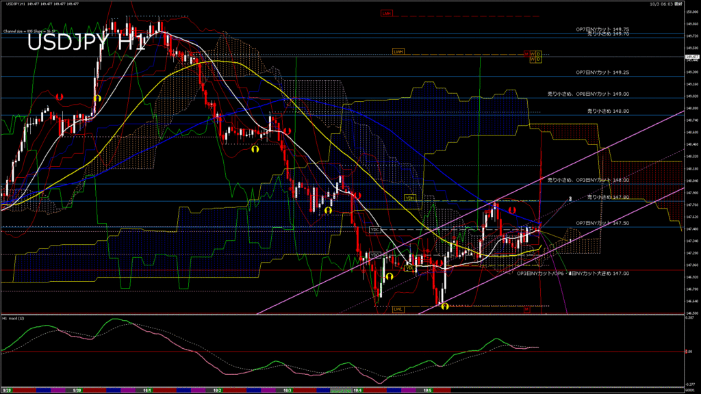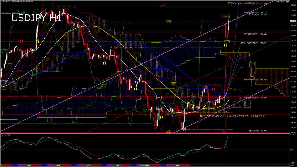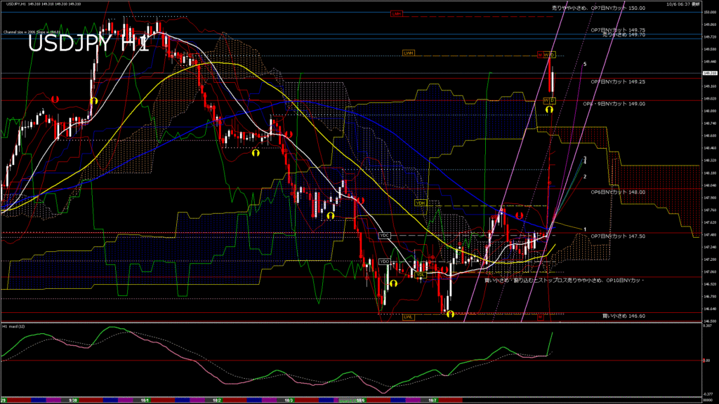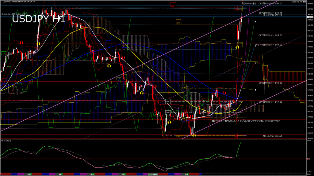 USDJPY-H1移動平均線と現在値(RSI)-2025.10.6 9:00:00