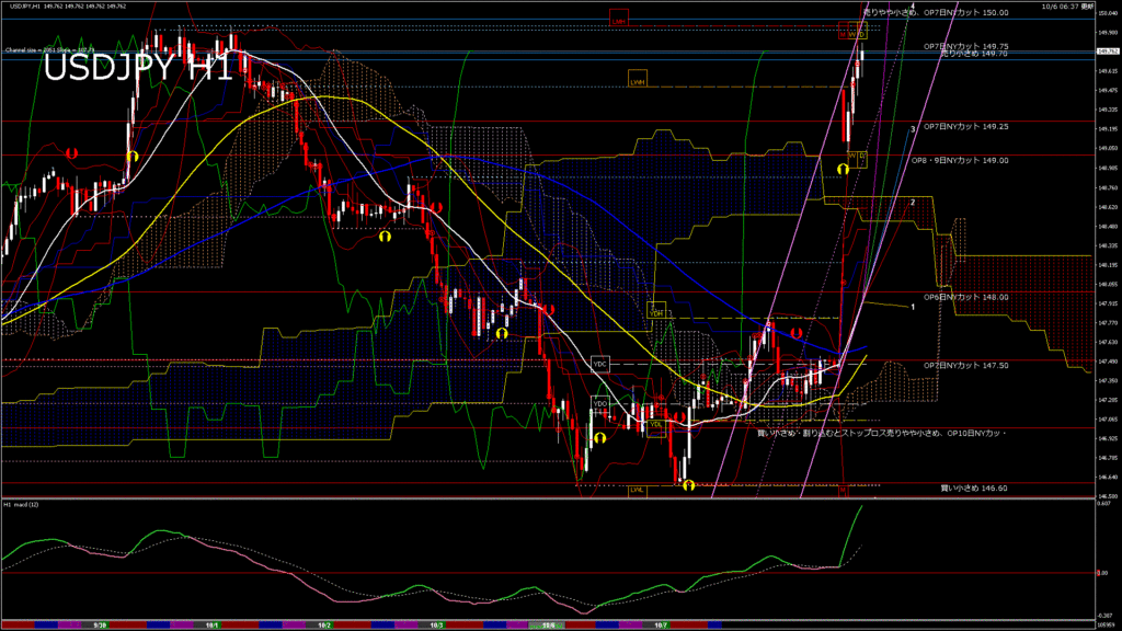 USDJPY-H1移動平均線と現在値(RSI)-2025.10.6 14:00:01