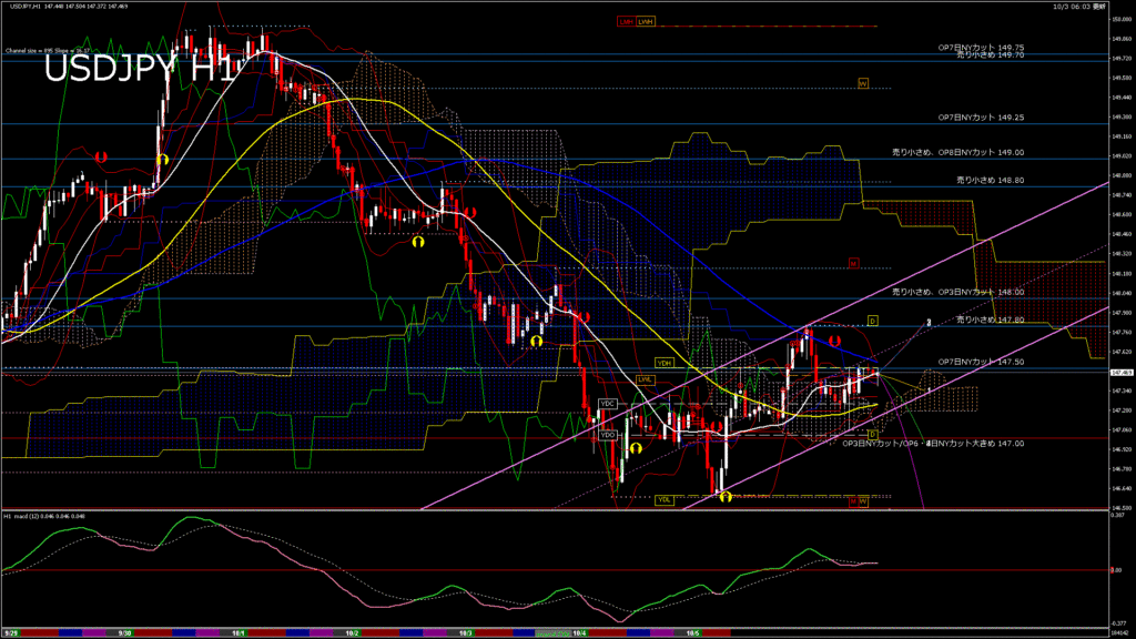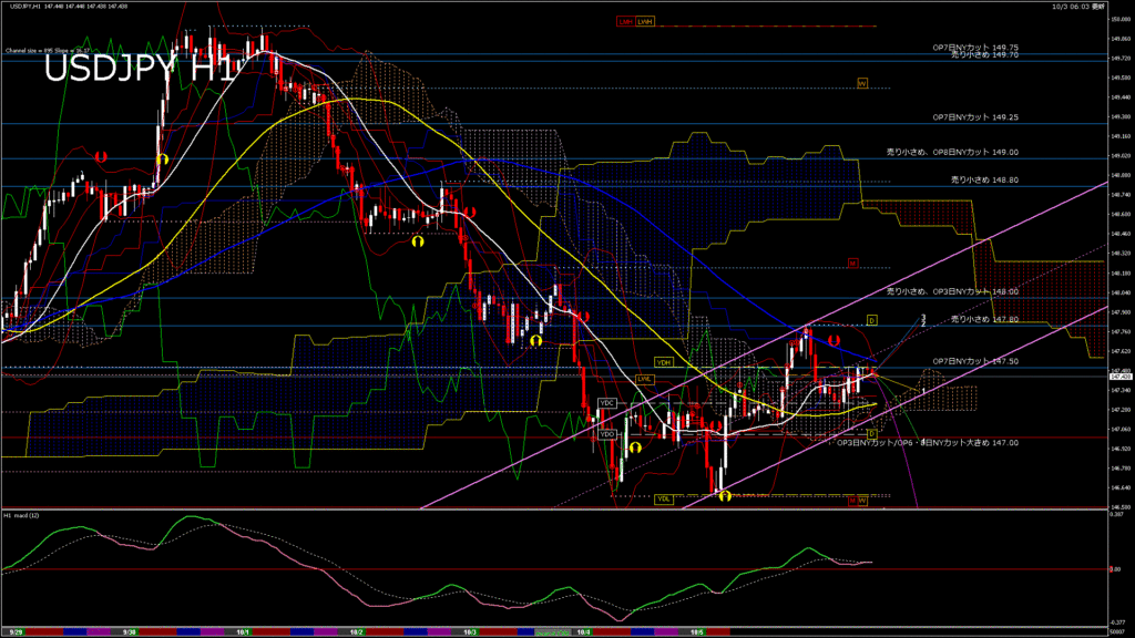 情報 USDJPY-H1移動平均線と現在値(RSI)-2025.10.6 8:00:00