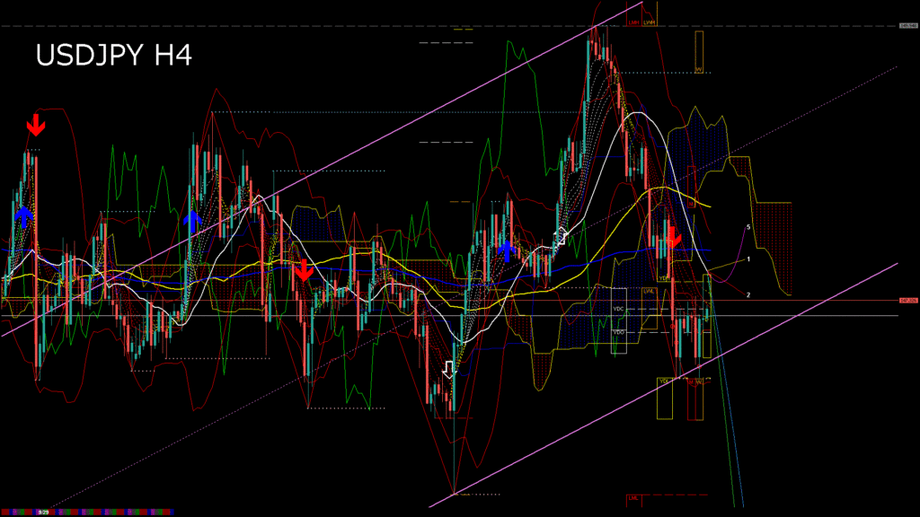 USDJPY-H4移動平均線と現在値(RSI)-2025.10.3 10:00:34