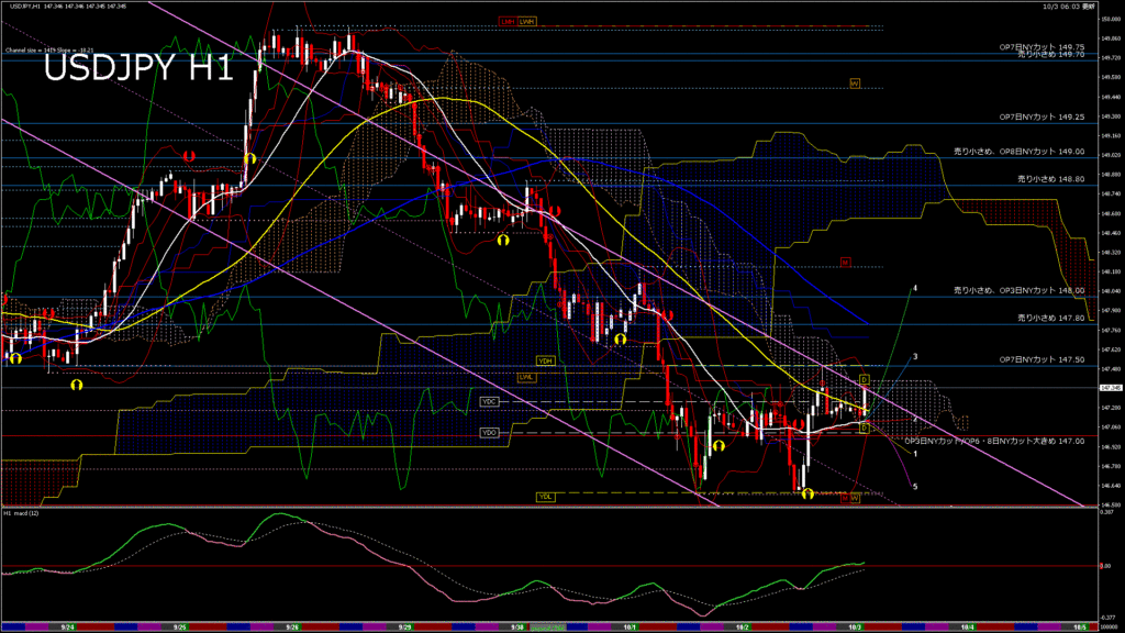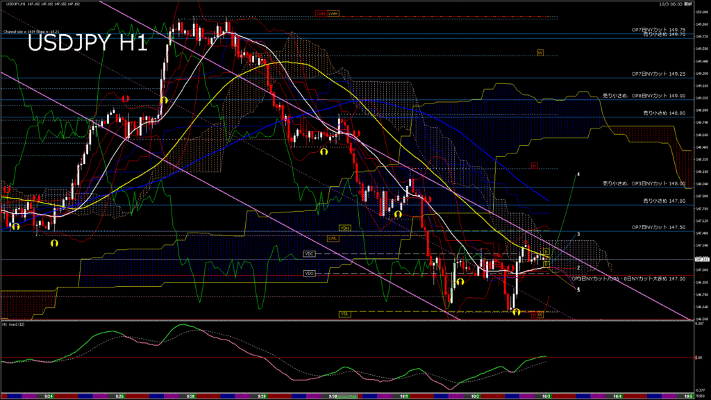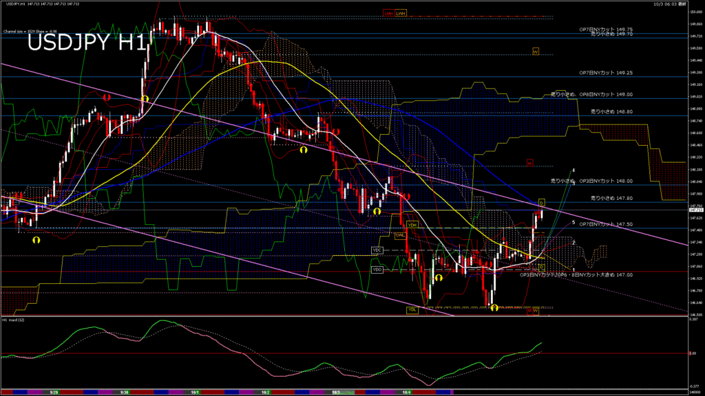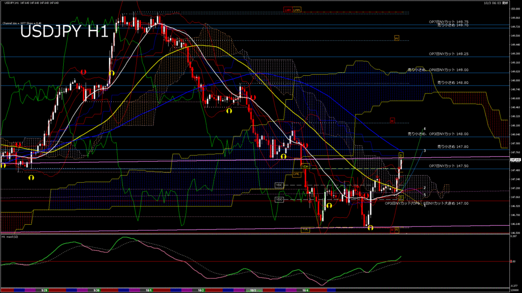 USDJPY-H1移動平均線と現在値(RSI)-2025.10.3 9:00:00